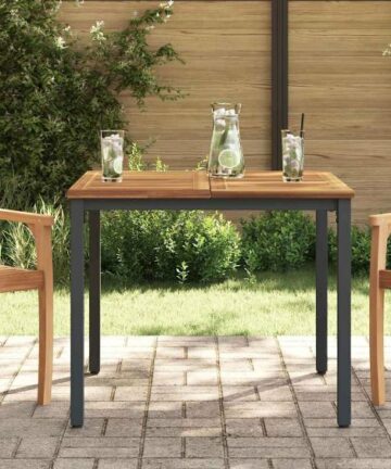 Dieser Gartentisch aus massivem Akazienholz ist ein echtes Highlight für deine Terrasse oder deinen Garten. Mit seiner modernen Form und der warmen Holzoptik schafft er einen einladenden Platz für gemütliche Treffen im Freien. Er kombiniert Stil mit praktischem Nutzen und bietet dir einen stabilen Platz für tolle Mahlzeiten, entspannte Gespräche oder einfach zum Relaxen unter dem Himmel. Massives Akazienholz: Die Tischplatte aus wunderschönem Akazienholz ist sowohl robust als auch schick. Es hält den Witterungsbedingungen gut stand und ist somit eine smarte Wahl für langlebige Gartenmöbel, die eine warme, einladende Ausstrahlung haben. Robuste Stahlbeine: Die stabilen Stahlbeine im klassischen Design sorgen dafür, dass der Tisch überall stabil steht. Sie sind stark genug, um täglichen Gebrauch auszuhalten, sodass der Tisch lange in Form bleibt. Moderne matte Oberfläche: Der Tisch hat eine matte Oberfläche, die ihm ein schickes Aussehen verleiht, ohne übertrieben zu wirken. Diese Oberfläche hebt die natürliche Schönheit des Holzes hervor und gibt deinem Outdoor-Bereich einen eleganten Touch. UV-beständig: Der Tisch wurde so gefertigt, dass er UV-Strahlen widersteht, was sein Aussehen vor Sonnenschäden schützt. Er behält seinen Stil und seine Robustheit Jahr für Jahr. Einfache Reinigung: Er ist leicht sauber zu halten; wische ihn einfach mit warmem Wasser und einem Tuch ab, damit er gut aussieht. Vermeide scharfe Reinigungsmittel für eine längere Lebensdauer, damit die Pflege einfach bleibt.