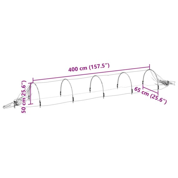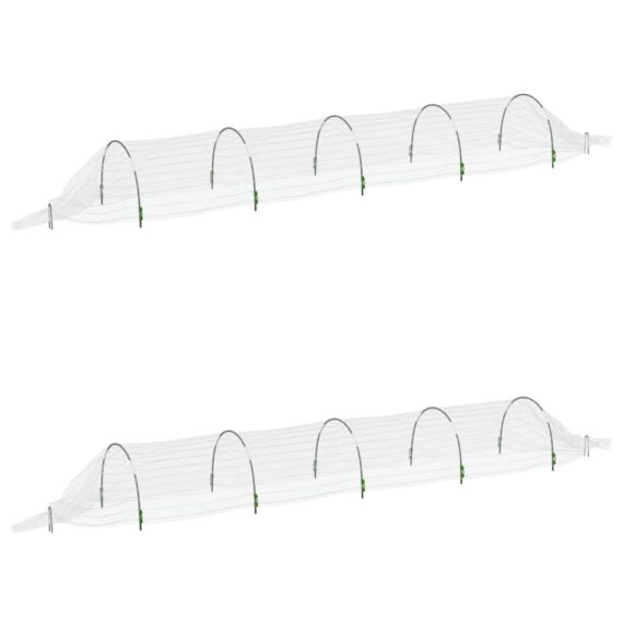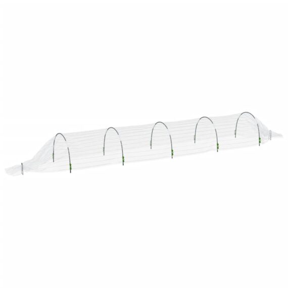 Diese Netztunnel sorgen für eine schnelle Keimung und ein schnelles Wachstum von Jungpflanzen und eignen sich auch als Pflanzenabdeckung, Pflanzenschutz z.B. in Gewächshäusern. Langlebig und flexibel: Der Pflanztunnel besteht aus Glasfaser und ist daher langlebig, korrosionsbeständig, elastisch und stark.DIY-Design: Jeder Pflanztunnel-Bogen besteht aus drei Röhren ohne Hülsen im Tunnel. Diese Rohre können je nach deinen spezifischen Anforderungen verbunden und zu Bögen geformt werden. Außerdem kann die Position des Rohrs individuell angepasst werden, so dass du die Breite zwischen den beiden Stützpfosten frei einstellen kannst.Einfach zu montieren: Stecke zuerst den Bogen etwa 10-15 cm in den Boden und lasse an beiden Enden des Netzes eine Länge von 50 cm hängen, bis sie den Boden erreicht. Zweitens schneide das Netz auf die gewünschte Größe zu und drapiere es über den Bogen. Drittens, befestige das Netz mit Klammern, um das Ganze gegen starke Winde zu sichern. Zum Schluss befestige das Gartennetz mit festen Bodenklammern entlang der Kante.Vielseitig einsetzbar: Dieser Netztunnel ist vielseitig und als Pflanzenschutz bestens geeignet; er schützt vor Insekten unter anderem Gemüse, Pflanzen und Blumen.