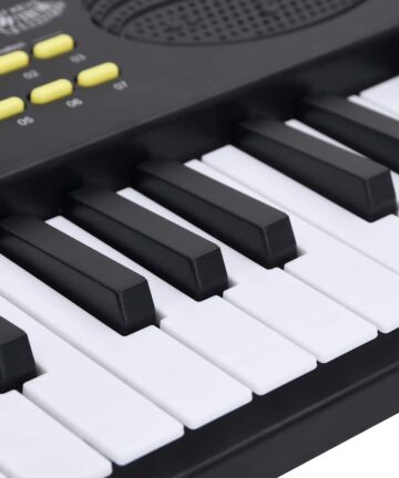 Diese elektrische Klaviertastatur ist die ideale Wahl für Kinder und trägt dazu bei, eine musikalische Umgebung zu schaffen, die die Entwicklung ihrer Intelligenz und ihres emotionalen Wachstums fördert. Vielseitig: Das Keyboard bietet 5 Demosongs, 8 Rhythmen, 8 Klänge und 4 Percussion-Optionen, die den Kindern die Freiheit geben, verschiedene Musikstile und Genres zu entdecken. Darüber hinaus verfügt es über ein LED-Display und einen Audioeingang/-ausgang für ein verbessertes Benutzererlebnis.Mit Mikrofon und Notenständer: Das Keyboard wird mit einem Mini-Mikrofon geliefert, sodass die Kinder beim Spielen mitsingen können, was ihre Leistungsfähigkeiten und ihr Selbstvertrauen fördert. Im Lieferumfang ist auch ein Notenständer enthalten, in dem die Noten bequem aufbewahrt werden können.Optionen für Batterie- und USB-Betrieb: Das Keyboard unterstützt sowohl den USB- als auch den Batteriebetrieb und bietet damit Flexibilität für den Einsatz zu Hause oder bei Auftritten im Freien.Kompaktes und tragbares Design: Mit seinen 37 Tasten ist dieses leichte Keyboard leicht zu transportieren und eignet sich daher perfekt für Anfänger, Kinder oder Musiker unterwegs.Perfektes Geschenk für Kinder: Dieses elektrische Keyboard ist ein ideales Geschenk für Kinder zum Geburtstag, zu Besuch oder zu Feiertagen wie Weihnachten, Thanksgiving, Kindertag, Neujahr oder anderen besonderen Anlässen.