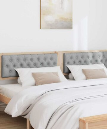 Dieses Kopfteil wurde so gestaltet, dass es Form und Funktion perfekt miteinander verbindet und die Atmosphäre in deinem Schlafzimmer mit modernem, schlichtem Design verbessert. Die klaren Linien und der minimalistische Stil machen es zur idealen Wahl für alle, die schlichte Eleganz schätzen. Wenn du Wert auf Stil und Praktikabilität legst, hilft dir dieses Kopfteil, die richtige Stimmung für eine ruhige und bequeme Schlafumgebung zu schaffen. Die rechteckige Form und die glatte Oberfläche bieten einen ansprechenden Hintergrund und geben deinem Wohnraum mehr Tiefe und Charakter. Stell dir vor, wie angenehm es ist, mit einem Buch oder einer Tasse Tee an dieses Möbelstück zu lehnen, während die atmungsaktive Material gut für eine entspannte Atmosphäre sorgt. Premium Materialien: Aus hochwertigem massivem Kiefernholz, steht dieser Kopfteil für Stabilität und Haltbarkeit. Kiefernholz ist bekannt für seine robuste Beschaffenheit und sorgt dafür, dass das Kopfteil über die Jahre hinweg toll aussieht. Der Stoff mildert zusammen mit dem hellgrauen Farbton und schafft eine beruhigende, neutrale Atmosphäre. Funktionales Design: Mit seinem rechteckigen, glatten Design fügt sich dieser Kopfteil wunderbar in moderne Innenräume ein. Die praktische Form passt zu vielen verschiedenen Bettstyls und -größen. Als dekoratives Element ist es ein echter Hingucker, der die optische Harmonie deines Schlafzimmers verbessert. Rückenstütze: Der Baumwollrücken bietet eine bequeme Fläche zum Entspannen, perfekt für nächtliches Lesen oder Relaxen. Seine atmungsaktive Eigenschaft sorgt dafür, dass die Luft zirkuliert, was besonders bei warmen Nächten für mehr Komfort sorgt und das Schlaferlebnis verbessert. Einfache Montage: Die Montage ist mit einem Schraubendreher ganz unkompliziert, sodass du es schnell aufbauen kannst. Durch das stabile Design und die leichten Komponenten lässt sich das Kopfteil schnell anbringen. Mühelose Pflege: Die Wartung des Kopfteils ist ganz einfach. Ein regelmäßiges Abstauben mit einem weichen, trockenen Tuch hält es in tadellosem Zustand, während einmaliges Abwischen mit einem feuchten Tuch dafür sorgt, dass es schmutzfrei bleibt. Vermeide scharfe Chemikalien, um die Materialien zu schonen und ihre Haltbarkeit zu garantieren.