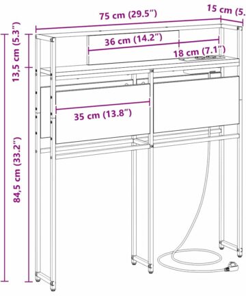 - Gesamtabmessungen: 75 x 15 x 98 cm (L x B x H)