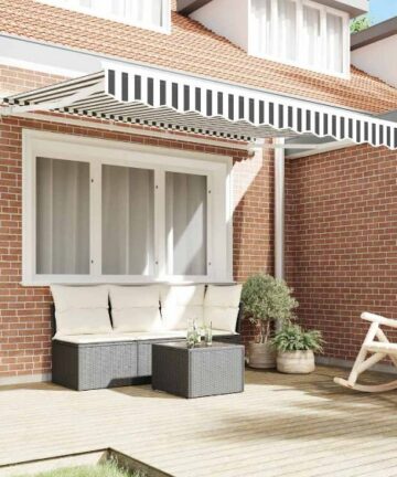 Diese stylische einziehbare Sonnenschutz-Markise verbessert sowohl die Optik als auch die Funktionalität deiner Außenbereiche. Perfekt, um schattige Plätze auf Balkonen oder Terrassen zu schaffen, bietet sie einen geschickten Übergang von offen zu zugezogen. Das elegante Design passt zu unterschiedlichen Außenstilen, ideal für zuhause oder für Unternehmen. Hochwertiger Stoff: Die Markise besteht aus erstklassigem Material, das UV-Strahlen, Wasser und Verblassen abwehrt. So bleibt sie auch nach viel Sonne schick. Das Material fühlt sich angenehm an und hat einen luxuriösen Effekt, ist aber gleichzeitig praktisch für draußen. Verstellbarer Winkel: Mit einem nützlichen 10-Grad verstellbaren Winkel kannst du die Markise so einstellen, wie du es brauchst, um den besten Schatten zu bekommen. Sie passt sich der Sonnenposition an, damit du den ganzen Tag über komfortabel bist. Funktionales Design: Die einziehbaren Teile verbinden Stil mit Praktikabilität. Wasserabweisende Materialien halten dich trocken, wenn das Wetter mal unbeständig ist und geben dir die Kontrolle über deinen Außenbereich für eine entspannte Zeit. Vielseitige Nutzung: Diese Markise ist ganz auf Außenbereiche ausgelegt und perfekt für Balkone und Freiluftbereiche. Ihre Flexibilität macht sie geeignet für die unterschiedlichsten Nutzungsmöglichkeiten, ob zum Entspannen, Essen oder für gesellige Abende. Einfache Wartung: Eine schnelle Reinigung mit kaltem Wasser und das Festziehen der Schrauben sorgen dafür, dass sie lange hält. Vermeide scharfe Chemikalien, um das Material und das Aussehen zu erhalten, was die Pflege einfach macht und sie über die Jahre hübsch bleibt.