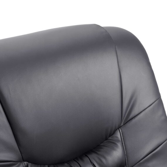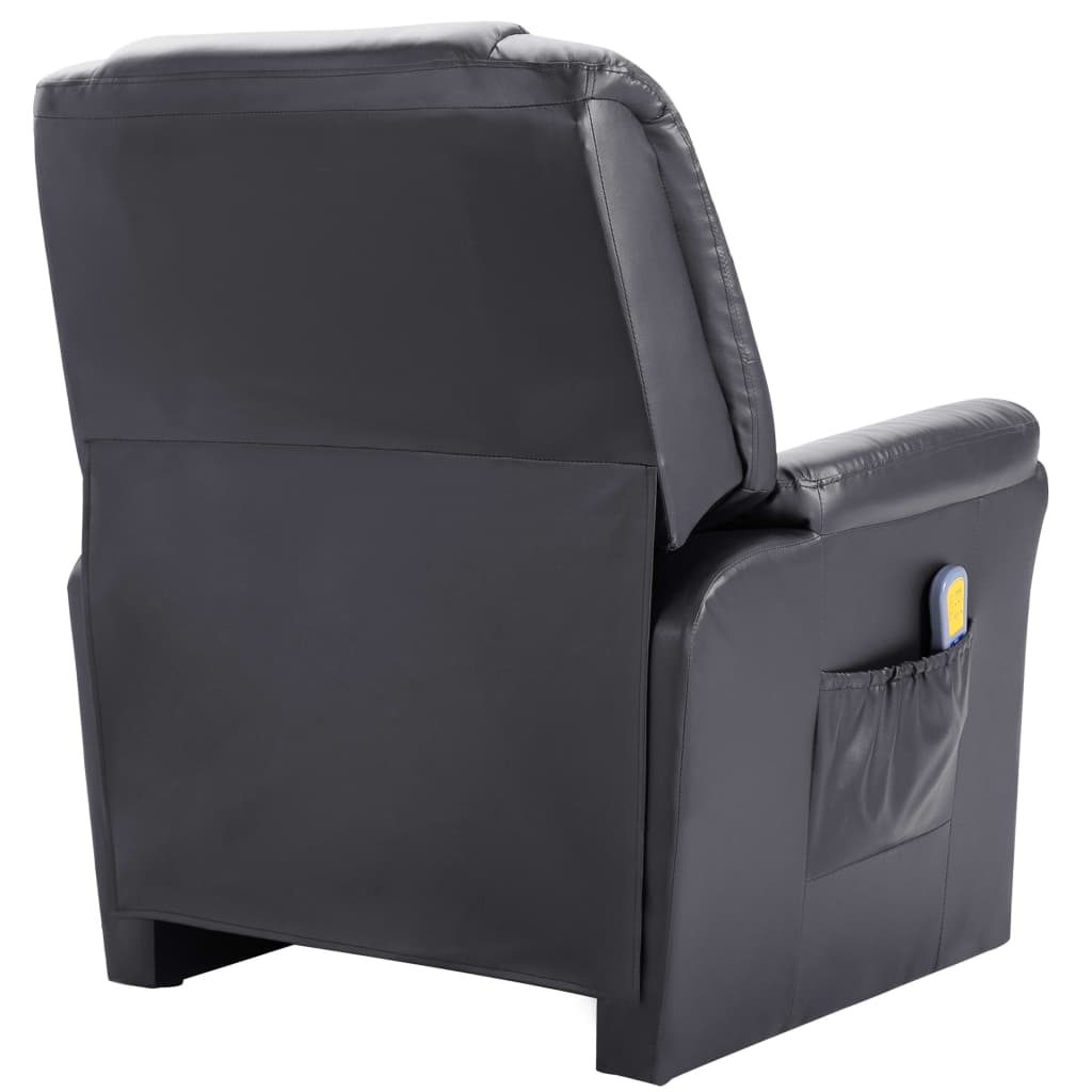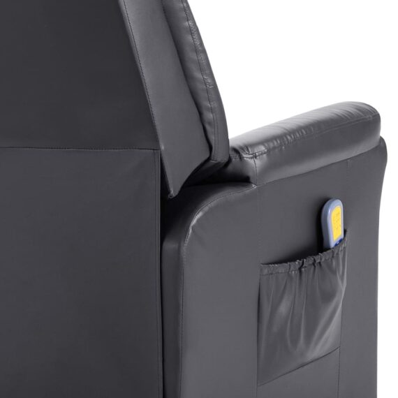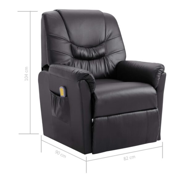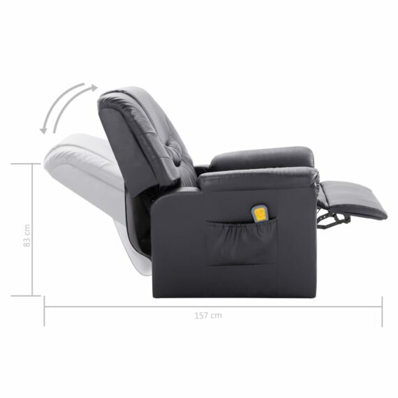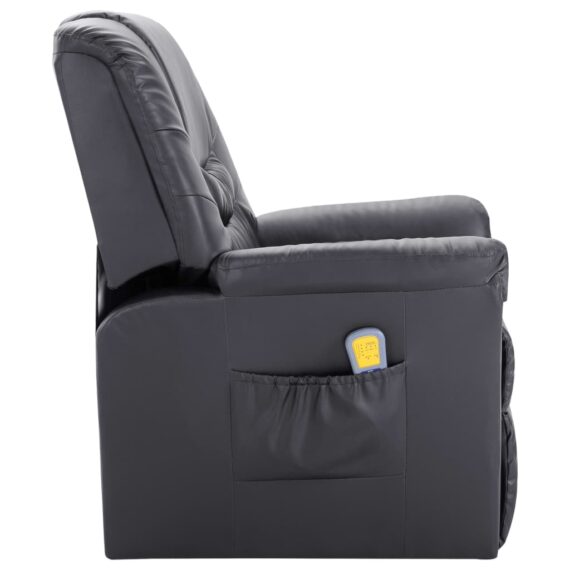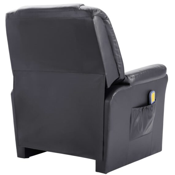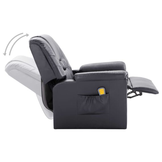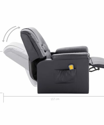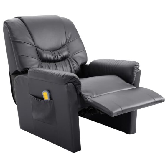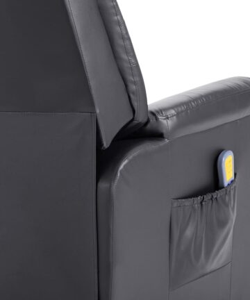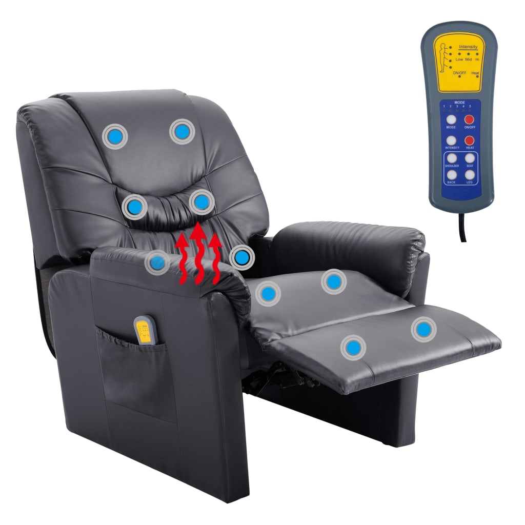 Dieser Massagesessel verfügt über 10 verschiedene Massageeinstellungen und Wärmefunktion. Er lässt sich auch in viele verschiedene Positionen verstellen. Der Sessel ist mit Kunstleder bezogen und verfügt über 10 Massagepunkte für Kopf, Nacken, Rücken und Beine. Die Massagepunkte erzeugen entspannende Vibrationen in 3 verschiedenen Intensitäten. Mit der mitgelieferten Fernbedienung kannst du aus 10 verschiedenen Massageprogrammen auswählen. Die Sitzfläche lässt sich auf Knopfdruck erwärmen, um sogar noch mehr Entspannung zu bieten. Die Rückenlehne kann nach hinten verstellt werden, während die Fußstütze nach oben gebracht werden kann, um eine angenehmen Liegeposition zu ermöglichen. Der Sessel ist auch mit Timer-Option ausgestattet, um die Dauer der Massage einzustellen. Hinweis: Das Produkt verfügt über einen USB-Anschluss, aber die zertifizierte 5-V-USB-Stromquelle ist nicht im Lieferumfang enthalten.
