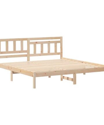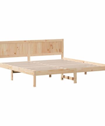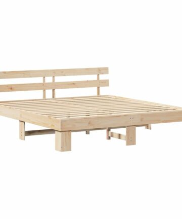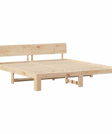 Bettgestell mit Kopfteil Natur 200 x 200 cm Massivholz Kiefer