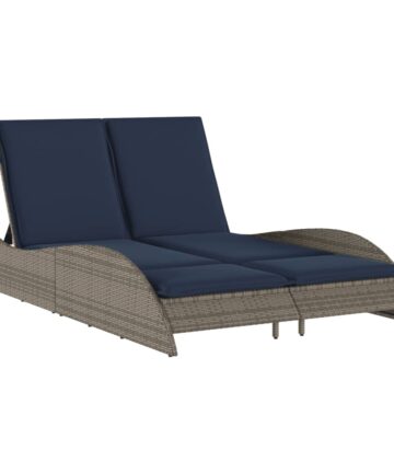 Sonnenliege mit Kissen Grau 114x205x73 cm Poly Rattan