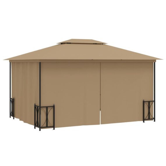 Mit diesem Gartenpavillon sorgen Sie für Schatten und Privatsphäre in Ihrem Außenbereich, um ihn angenehmer zu gestalten! Erstklassiges Material: Die Gartenlaube verfügt über einen Rahmen aus pulverbeschichtetem Stahl. Sie ist daher sehr robust und langlebig. Das Dach besteht zu 100 % aus Polyester mit PA-Beschichtung, das wasserfest ist und die schädlichsten Strahlen abblendet.Doppeldach für Luftzirkulation: Das Doppeldach sorgt für eine bessere Luftzirkulation.Seitenwände für Schutz: Die mitgelieferten Seitenwände schaffen zusätzliche Privatsphäre und bieten vollständigen Schutz vor lästigen Moskitos und anderen Insekten. Dabei können Sie dank der abnehmbaren Seitenwände leicht zwischen einer offenen und einer geschlossenen Gartenlaube wechseln.Elegantes Design: Jeder Standfuß wird mit zwei Zierpaneelen geliefert, die für zusätzliche Schönheit sorgen. Hinweis:Dieses Produkt sollte NIEMALS bei schlechtem Wetter wie starkem Wind, starkem Regen, Schnee, Sturm usw. verwendet werden.