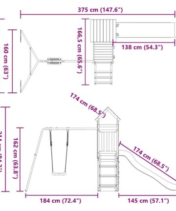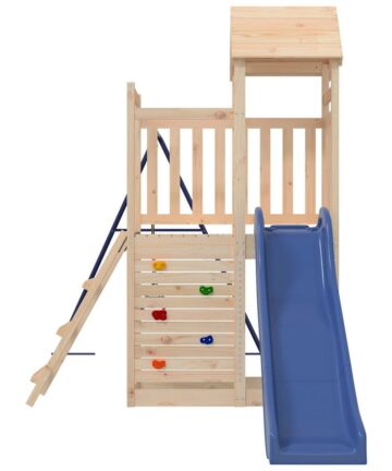 Möchtest du deinen Kindern ihren eigenen Spielplatz schenken? Dieser Spielplatz aus Holz ermöglicht fantasievolle Abenteuer im eigenen Garten! Langlebiges Material: Dieser Spielturm mit Rutsche ist aus massivem Kiefernholz gefertigt. Massives Kiefernholz ist ein schönes Naturmaterial. Kiefernholz weist eine gerade Maserung auf und die Aststellen verleihen dem Material seine charakteristische, rustikale Optik.Robuster und stabiler Rahmen: Der Holzrahmen verleiht dem Garten-Klettergerüst Robustheit und Stabilität. Zudem gewährleistet das „A“-förmige Gestell die Stabilität der Kinderschaukel.Spielzentrum: Der Spielturm verfügt über eine 90 cm hohe Plattform, eine Wellenrutsche, eine Schaukel, eine Leiter, eine Kletterwand sowie einen Sandkasten. So können deine Kleinen auch ihre Freunde zum Mitspielen einladen. Durchdachtes Design: Die umlaufenden Holzgeländer gewährleisten die Sicherheit der Kinder beim Spielen. Zudem spendet das Holzdach an heißen Sommertagen Schatten.Unendlicher Spaß: Dieses lustige Spielhaus aus Holz bietet deinen Kindern und ihren Freunde die perfekte Möglichkeit, Spaß zu haben, nach Herzenslust zu spielen und tolle Erinnerungen fürs Leben zu schaffen! Achtung:Nur für den HausgebrauchFür den Außenbereich Nicht geeignet für Kinder unter 3 Jahren Empfohlenes Benutzeralter: 3-8 Jahre Gut zu wissen:Um die Montage so einfach wie möglich zu machen, wird jedes Produkt mit einer Anleitung geliefert.