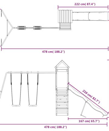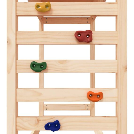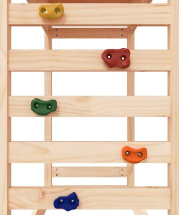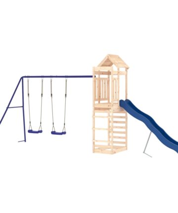 Möchtest du deinen Kindern ihren eigenen Spielplatz schenken? Dieser Spielplatz aus Holz ermöglicht fantasievolle Abenteuer im eigenen Garten! Massives Kiefernholz: Dieser Kletterturm ist aus Kiefern-Massivholz gefertigt. Kiefernholz ist ein wunderschönes Naturmaterial, das hat eine gerade Maserung und Aststellen aufweist. Diese verleihen dem Holz sein typisches, rustikales Aussehen.Robuster und stabiler Rahmen: Der Spielgerät-Rahmen aus Holz sorgt für Robustheit und Sicherheit. Außerdem sorgt das „A“-förmige Gestell der Kinderschaukel für Stabilität.Mehrere Spielmöglichkeiten: Das Spielgerät verfügt über eine 118 cm hohe Plattform und zeichnet sich durch eine Kletterwand, eine Wellenrutsche, zwei Schaukeln sowie einen Sandkasten aus. So können deine Kleinen auch ihre Freunde zum Mitspielen einladen. Durchdachtes Design: Die umlaufenden Holzgeländer gewährleisten die Sicherheit der Kinder beim Spielen. Zudem spendet das Holzdach an heißen Sommertagen Schatten.Unendlicher Spielspaß: Dieser lustige Kletterturm aus Holz ist die perfekte Möglichkeit für deine Kinder und ihre Freunde, sich auszutoben, mehr Spaß miteinander zu haben und Erinnerungen zu schaffen! Achtung:Nur für den HausgebrauchFür den AußenbereichNicht geeignet für Kinder unter 3 JahrenEmpfohlenes Benutzeralter: 3-8 Jahre