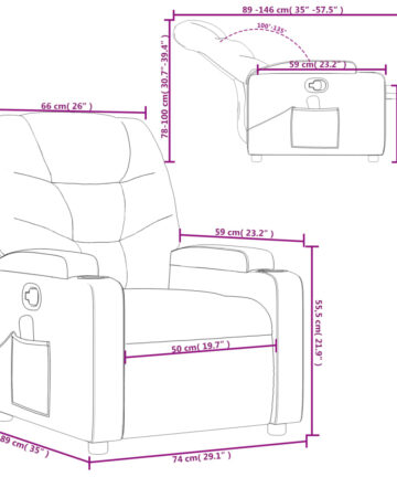 - Maße im Liegen: 74 x 146 x 78 cm (B x T x H)