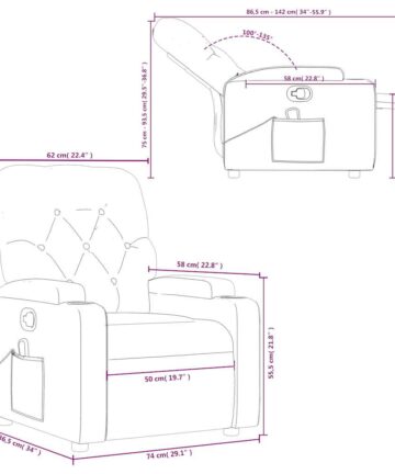 - Maße im Sitzen: 74 x 86,5 x 93,5 cm (B x T x H)