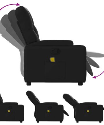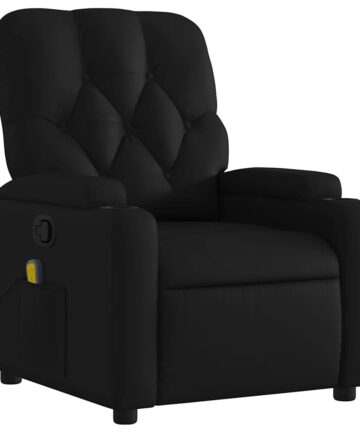 Lehnen Sie sich zurück und entspannen Sie sich in diesem äußerst bequemen Massagesessel! Manuelle Liegefunktion: Dieser Liegesessel verfügt über einen Griff auf der rechten Seite. Sie können die Fußstütze und die Rückenlehne durch einfaches Ziehen am Griff manuell in jede gewünschte Position bringen. Diese Funktion ermöglicht eine maximale Neigung von 135 Grad. Zusätzlich lässt sich die Rückenlehne durch einfaches Ziehen am Griff schnell in die Ausgangsposition zurückstellen. Vibrationsfunktion: Die 6 Massagepunkte ermöglichen eine gezieltere Massage. Mit der mitgelieferten Handsteuerung können Sie verschiedene Massageprogramme auswählen. Die Massagefunktion wird über den USB-Anschluss mit Strom versorgt, ein zertifiziertes 5-V-USB-Netzteil ist jedoch nicht im Lieferumfang enthalten. Bequemes Sitzerlebnis: Die dick gepolsterte Sitzfläche, Rückenlehne und die breiten Armlehnen mit Kunstlederbezug sorgen für ein behagliches Gefühl und geben Ihnen das Gefühl, beim Sitzen umarmt zu sein. Kunstleder ist ein äußerst strapazierfähiges Material. Er ist schmutzabweisend und lässt sich daher leicht mit einem feuchten Tuch reinigen. Die glatte Oberfläche verleiht zudem ein luxuriöses Aussehen und die Schönheit von echtem Leder.Praktische Getränkehalter und Seitentasche: Dieser Sessel verfügt über zwei praktische Getränkehalter für Ihre Getränke und eine Seitentasche für Ihre Fernbedienung oder wichtige Gegenstände in Reichweite.Solider und stabiler Rahmen: Der Rahmen aus Holz und Metall sorgt für eine starke Struktur und Stabilität. Dieser Liegesessel ist bequem und langlebig.