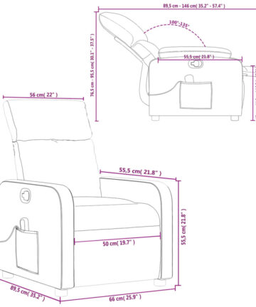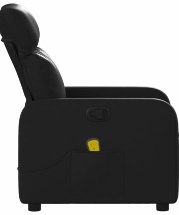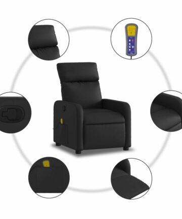 Lehnen Sie sich zurück und entspannen Sie sich in diesem äußerst bequemen Massagesessel! Manuelle Liegefunktion: Dieser Liegesessel verfügt über einen Griff auf der rechten Seite. Sie können die Fußstütze und die Rückenlehne durch einfaches Ziehen am Griff manuell in jede gewünschte Position bringen. Diese Funktion ermöglicht eine maximale Neigung von 135 Grad. Zusätzlich lässt sich die Rückenlehne durch einfaches Ziehen am Griff schnell in die Ausgangsposition zurückstellen. Vibrationsfunktion: Die 6 Massagepunkte ermöglichen eine gezieltere Massage. Mit der mitgelieferten Handsteuerung können Sie verschiedene Massageprogramme auswählen. Die Massagefunktion wird über den USB-Anschluss mit Strom versorgt, ein zertifiziertes 5-V-USB-Netzteil ist jedoch nicht im Lieferumfang enthalten. Bequemes Sitzerlebnis: Die dick gepolsterte Sitzfläche, Rückenlehne und die breiten Armlehnen mit Kunstlederbezug sorgen für ein behagliches Gefühl und geben Ihnen das Gefühl, beim Sitzen umarmt zu sein. Kunstleder ist ein äußerst strapazierfähiges Material. Er ist schmutzabweisend und lässt sich daher leicht mit einem feuchten Tuch reinigen. Die glatte Oberfläche verleiht ihm zudem ein luxuriöses Aussehen und die Schönheit von echtem Leder.Praktische Seitentasche: Dieser Sessel verfügt über eine Seitentasche für Ihre Fernbedienung oder um wichtige Gegenstände griffbereit aufzubewahren.Solider und stabiler Rahmen: Der Rahmen aus Holz und Metall sorgt für eine starke Struktur und Stabilität. Dieser Relaxsessel ist bequem und langlebig.