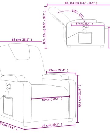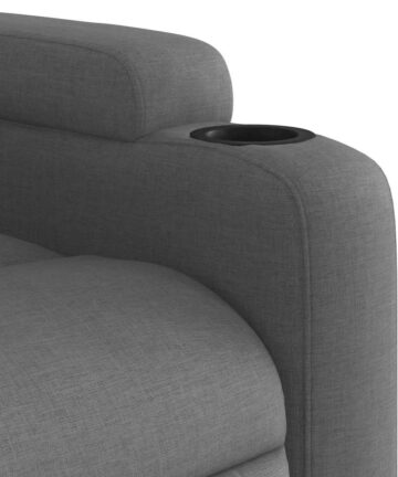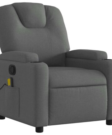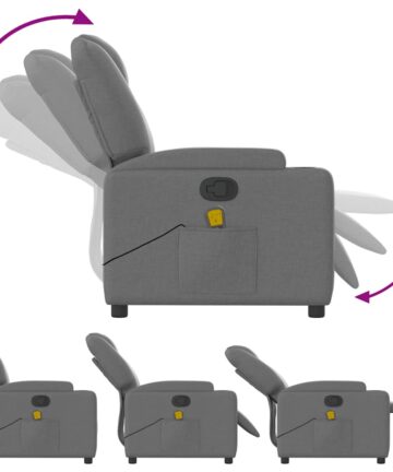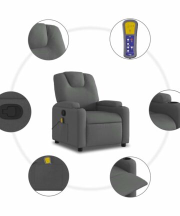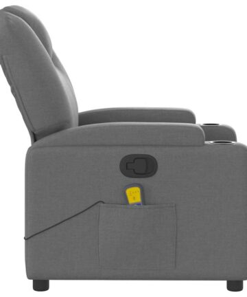 Lehnen Sie sich zurück und entspannen Sie sich in diesem äußerst bequemen Massagesessel! Manuelle Liegefunktion: Dieser Liegesessel verfügt über einen Griff auf der rechten Seite. Sie können die Fußstütze und die Rückenlehne durch einfaches Ziehen am Griff manuell in jede für Sie bequeme Position bringen. Diese Funktion ermöglicht eine maximale Neigung von 135 Grad. Zusätzlich lässt sich die Rückenlehne durch einfaches Ziehen am Griff schnell in die Ausgangsposition zurückstellen. Vibrationsfunktion: Die 6 Massagepunkte ermöglichen eine gezieltere Massage. Mit der mitgelieferten Handsteuerung können Sie verschiedene Massageprogramme auswählen. Die Massagefunktion wird über den USB-Anschluss mit Strom versorgt, ein zertifiziertes 5-V-USB-Netzteil ist jedoch nicht im Lieferumfang enthalten. Bequemes Sitzerlebnis: Die dick gepolsterte Sitzfläche, Rückenlehne und die breiten, mit Stoff bezogenen Armlehnen sorgen für ein behagliches und warmes Gefühl, während Sie sitzen. Der Stoff besticht durch eine schlichte und klare Optik und ist atmungsaktiv und strapazierfähig.Praktische Getränkehalter und Seitentasche: Dieser Sessel verfügt über zwei praktische Getränkehalter für Ihre Getränke und eine Seitentasche für Ihre Fernbedienung oder um Ihre wichtigen Gegenstände griffbereit aufzubewahren.Solider und stabiler Rahmen: Der Rahmen aus Holz und Metall sorgt für eine starke Struktur und Stabilität. Dieser Liegesessel ist bequem und langlebig.