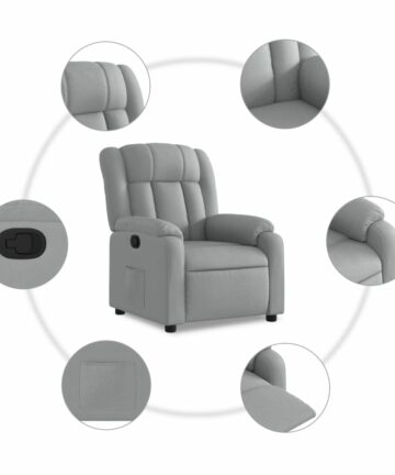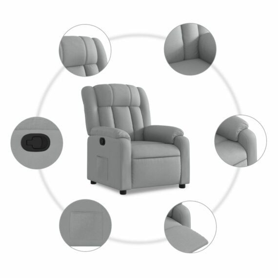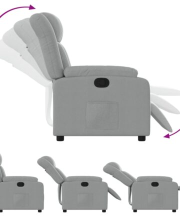 Lehnen Sie sich zurück und entspannen Sie sich in diesem äußerst bequemen Ruhesessel! Manuelle Liegefunktion: Dieser Ruhesessel verfügt über einen Griff auf der rechten Seite. Sie können die Fußstütze und die Rückenlehne durch einfaches Ziehen am Griff manuell in jede gewünschte Position bringen. Diese Funktion ermöglicht eine maximale Neigung von 135 Grad. Zusätzlich lässt sich die Rückenlehne durch einfaches Ziehen am Griff schnell in die Ausgangsposition zurückstellen.Bequemes Sitzerlebnis: Die dick gepolsterte Sitzfläche, Rückenlehne und die breiten, mit Stoff bezogenen Armlehnen sorgen für ein behagliches und warmes Sitzgefühl. Der Stoff besticht durch seine schlichte und klare Optik und ist atmungsaktiv und strapazierfähig.Praktische Seitentasche: Dieser Sessel verfügt über eine Seitentasche, in der Sie Ihre wichtigsten Gegenstände griffbereit aufbewahren können.Solider und stabiler Rahmen: Der Rahmen aus Holz und Metall sorgt für eine starke Struktur und Stabilität. Dieser Ruhesessel ist bequem und langlebig.