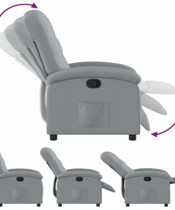 Lehnen Sie sich zurück und entspannen Sie sich in diesem äußerst bequemen Ruhesessel! Manuelle Liegefunktion: Dieser Ruhesessel verfügt über einen Griff auf der rechten Seite. Sie können die Fußstütze und die Rückenlehne durch einfaches Ziehen am Griff manuell in jede gewünschte Position bringen. Diese Funktion ermöglicht eine maximale Neigung von 135 Grad. Zusätzlich lässt sich die Rückenlehne durch einfaches Ziehen am Griff schnell in die Ausgangsposition zurückstellen.Bequemes Sitzerlebnis: Die dick gepolsterte Sitzfläche, Rückenlehne und die breiten, mit Stoff bezogenen Armlehnen sorgen für ein behagliches und warmes Sitzgefühl. Der Stoff besticht durch seine schlichte und klare Optik und ist atmungsaktiv und strapazierfähig.Praktische Seitentasche: Dieser Sessel verfügt über eine Seitentasche, in der Sie Ihre wichtigsten Gegenstände griffbereit aufbewahren können.Solider und stabiler Rahmen: Der Rahmen aus Holz und Metall sorgt für eine starke Struktur und Stabilität. Dieser Ruhesessel ist bequem und langlebig.