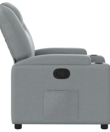 Lehnen Sie sich zurück und lassen Sie es sich in diesem äußerst bequemen Ruhesessel gut gehen! Manuelle Liegefunktion: Dieser Ruhesessel verfügt über einen Knopf auf der rechten Seite. Sie können die Fußstütze und die Rückenlehne durch einfaches Ziehen des Griffs manuell in jede für Sie bequeme Position bringen. Diese Funktion ermöglicht eine maximale Neigung von 135 Grad. Zusätzlich lässt sich die Rückenlehne durch einfaches Ziehen des Griffs schnell in die Ausgangsposition zurückstellen. Bequemes Sitzerlebnis: Die dick gepolsterte Sitzfläche, Rückenlehne und die breiten, mit Stoff bezogenen Armlehnen sorgen für ein gemütliches und warmes Gefühl, sodass Sie sich beim Sitzen umarmt fühlen. Der Stoff hat eine schlichte und klare Optik und ist atmungsaktiv und strapazierfähig. Praktische Getränkehalter und Seitentasche: Dieser Sessel verfügt über zwei praktische Getränkehalter für Ihre Getränke und eine Seitentasche, damit Sie Ihre wichtigsten Gegenstände griffbereit haben. Solider und stabiler Rahmen: Der Rahmen aus Holz und Metall sorgt für eine starke Struktur und Stabilität. Dieser Liegesessel ist bequem und langlebig.