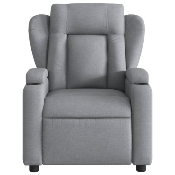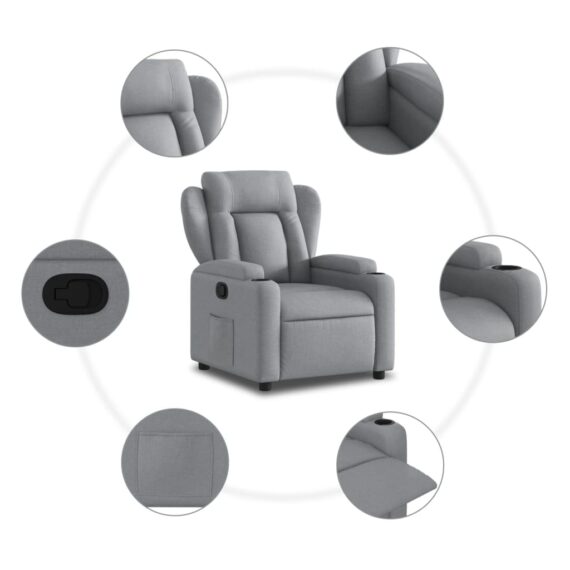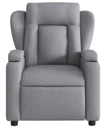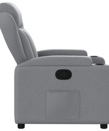 Lehnen Sie sich zurück und lassen Sie es sich in diesem äußerst bequemen Ruhesessel gut gehen! Manuelle Liegefunktion: Dieser Ruhesessel verfügt über einen Knopf auf der rechten Seite. Sie können die Fußstütze und die Rückenlehne durch einfaches Ziehen des Griffs manuell in jede für Sie bequeme Position bringen. Diese Funktion ermöglicht eine maximale Neigung von 135 Grad. Zusätzlich lässt sich die Rückenlehne durch einfaches Ziehen des Griffs schnell in die Ausgangsposition zurückstellen. Bequemes Sitzerlebnis: Die dick gepolsterte Sitzfläche, Rückenlehne und die breiten, mit Stoff bezogenen Armlehnen sorgen für ein gemütliches und warmes Gefühl, sodass Sie sich beim Sitzen umarmt fühlen. Der Stoff hat eine schlichte und klare Optik und ist atmungsaktiv und strapazierfähig. Praktische Getränkehalter und Seitentasche: Dieser Sessel verfügt über zwei praktische Getränkehalter für Ihre Getränke und eine Seitentasche, damit Sie Ihre wichtigsten Gegenstände griffbereit haben. Solider und stabiler Rahmen: Der Rahmen aus Holz und Metall sorgt für eine starke Struktur und Stabilität. Dieser Liegesessel ist bequem und langlebig.