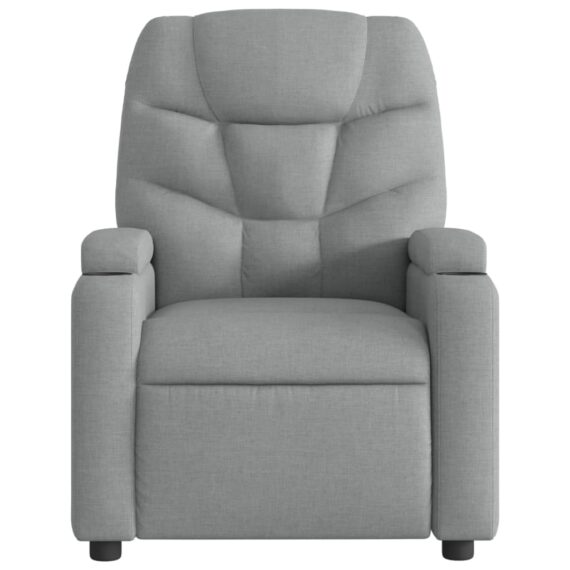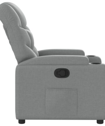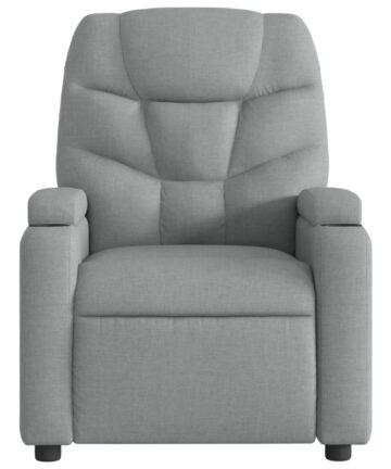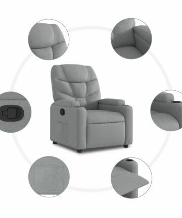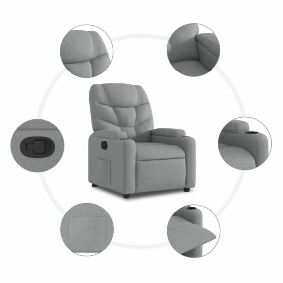 Lehnen Sie sich zurück und lassen Sie es sich in diesem äußerst bequemen Ruhesessel gut gehen! Manuelle Liegefunktion: Dieser Ruhesessel hat einen Griff auf der rechten Seite. Sie können die Fußstütze und die Rückenlehne durch einfaches Ziehen am Griff manuell in jede für Sie bequeme Position bringen. Diese Funktion ermöglicht eine maximale Neigung von 135 Grad. Zusätzlich lässt sich die Rückenlehne durch einfaches Ziehen am Griff schnell in die Ausgangsposition zurückstellen. Bequemes Sitzerlebnis: Die dick gepolsterte Sitzfläche, Rückenlehne und die breiten, mit Stoff bezogenen Armlehnen sorgen für ein gemütliches und warmes Gefühl, sodass Sie sich beim Sitzen umarmt fühlen. Der Stoff hat eine schlichte und klare Optik und ist atmungsaktiv und strapazierfähig. Praktische Getränkehalter und Seitentasche: Dieser Sessel hat zwei praktische Getränkehalter für Ihre Getränke und eine Seitentasche, damit Sie Ihre wichtigsten Gegenstände griffbereit haben. Solider und stabiler Rahmen: Der Rahmen aus Holz und Metall sorgt für eine starke Struktur und Stabilität. Dieser Liegesessel ist bequem und langlebig.