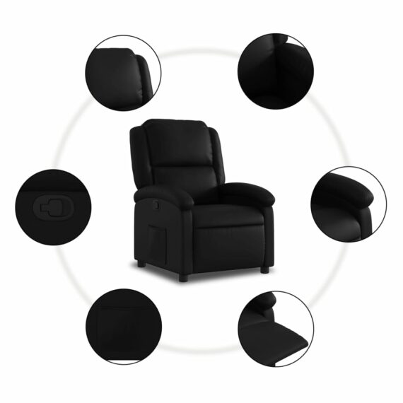 Lehnen Sie sich zurück und lassen Sie es sich in diesem äußerst bequemen Ruhesessel gut gehen! Manuelle Liegefunktion: Dieser Ruhesessel verfügt über einen Knopf auf der rechten Seite. Sie können die Fußstütze und die Rückenlehne durch einfaches Ziehen am Griff manuell in jede für Sie bequeme Position bringen. Diese Funktion ermöglicht eine maximale Neigung von 135 Grad. Zusätzlich lässt sich die Rückenlehne durch einfaches Ziehen am Griff schnell in die Ausgangsposition zurückstellen.Bequemes Sitzerlebnis: Die dick gepolsterte Sitzfläche, Rückenlehne und die breiten Armlehnen mit Kunstlederbezug sorgen für ein behagliches Sitzgefühl und geben Ihnen das Gefühl, beim Sitzen umarmt zu sein. Kunstleder ist ein äußerst strapazierfähiges Material. Es ist schmutzabweisend und lässt sich leicht mit einem feuchten Tuch reinigen. Die glatte Oberfläche verleiht zudem ein luxuriöses Aussehen und die Schönheit von echtem Leder.Praktische Seitentasche: Dieser Sessel verfügt über eine Seitentasche, in der Sie Ihre wichtigsten Gegenstände griffbereit aufbewahren können.Solider und stabiler Rahmen: Der Rahmen aus Holz und Metall sorgt für eine starke Struktur und Stabilität. Dieser Liegesessel ist bequem und langlebig.