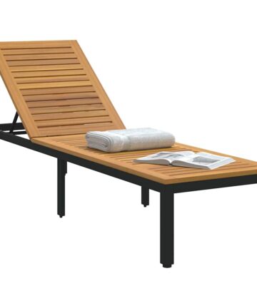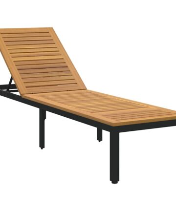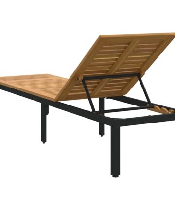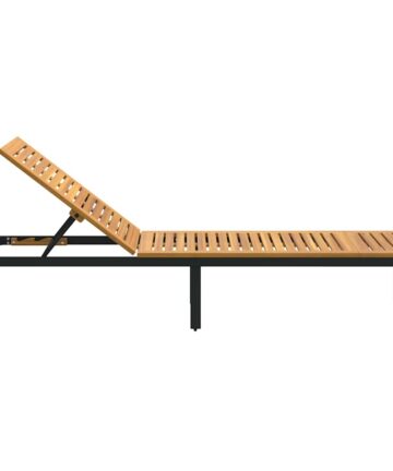 Sonnenliege 1-Person Schwarz 200 x 55 x 35cm Massivholz Akazie