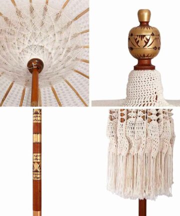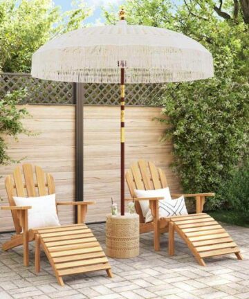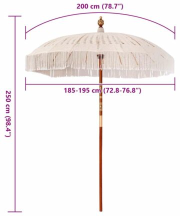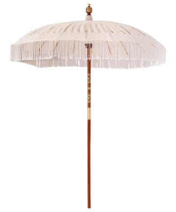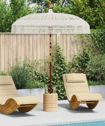 Der Bohemian Sonnenschirm für die Terrasse ist eine coole und kreative Schattenlösung für deine Außenbereiche. Er ist für Leute gedacht, die eine spannende Mischung aus Texturen und Mustern mögen; dieser Sonnenschirm peppt dein Patio echt auf und bringt einen spielerischen, aber eleganten Vibe, der perfekt in deinen Garten passt. Sein kunstvolles Design in Cremefarbe, mit runder Form und toller Struktur schafft nicht nur bohemian Flair, sondern bietet auch einen gemütlichen Rückzugsort an sonnigen Tagen – die perfekte Ergänzung für dein Patio, deinen Garten oder deine Terrasse. Hochwertige Materialien: Hergestellt aus stabilem Holz und weicher Baumwolle, wurde dieser Sonnenschirm dafür gemacht, draußen allen Witterungsbedingungen standzuhalten und dabei gut auszusehen. Die Baumwolle ist weich und das Holz sorgt für einen starken Halt, also ist er bereit für jedes Wetter. UV-beständig: Mit einem UV-beständigen Stoff schützt dieser Sonnenschirm vor Ausbleichen und Schäden durch die Sonne über die Zeit. Genieße endlosen Schatten und Schutz, ohne dir Gedanken zu machen, dass der Stoff im Laufe der Jahre seine Farbe verliert. Wasserabweisend: Dank einer wasserabweisenden Beschichtung perlt das Wasser einfach ab. Das heißt, du kannst deinen Außenbereich schnell wieder nutzen, nachdem der Regen vorbei ist, was ihn zur praktischen Wahl für das oftmals unberechenbare Sommerwetter macht. Bohemian Stil: Der bohemian Look dieses Sonnenschirms passt zu vielen verschiedenen Dekoren im Freien. Sein strukturiertes Design und die runde Form sorgen für einen klassischen Akzent in Gartenbereichen und machen ihn zu einer schicken, aber funktionalen Wahl für bunte Garteneinrichtungen. Wartungsfrei: Mit einfacher Handhabung und unkompliziertem Design ist dieser Sonnenschirm die ideale Ergänzung für jeden Außenbereich. Er ist sofort bereit, deinen Raum aufzuhellen, benötigt keine Montage und bietet das ganze Jahr über einen einfachen Einsatz.