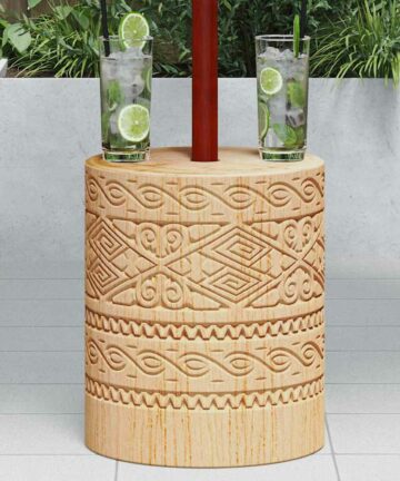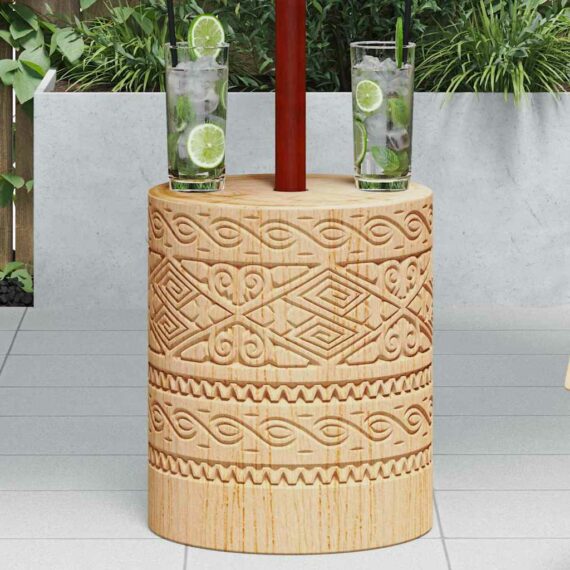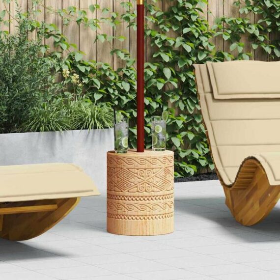 Dieser stylische Sonnenschirmständer vereint Schönheit und Funktionalität für deinen Garten. Mit seinem modernen Design steht er für tolles Handwerk und innovativen Style. Das massive Holz fühlt sich super an und sieht einfach klasse aus, und verleiht jedem Garten oder Terrasse einen eleganten Touch. Die zylindrische Form gibt ihm eine besondere Ausstrahlung und macht ihn zu einem echten Hingucker, während er deinen Schirm sicher stützt. Robuste Holzbauweise: Dieser Schirmständer ist aus solidem Holz und super stabil. Sein schickes Aussehen bringt Klasse in deinen Garten oder auf die Terrasse, und er wird über die Jahre hinweg seinen Charme behalten. Kreatives Design: Genieß die Kombination aus handwerklicher Qualität und modernem Look. Die tollen Intarsien ziehen alle Blicke an und verwandeln den Ständer in ein stylisches Teil deiner Außen-Deko. Für jedes Wetter geeignet: Der Schirmständer ist stark genug für wechselhaftes Wetter und hält deinen Schirm fest, damit du dich entspannen kannst, ohne Angst zu haben, dass er umfällt. Einfache Pflege: Um den Besten aus deinem Schirmständer herauszuholen, schütze ihn vor schlechtem Wetter und bring ihn bei extremen Temperaturen rein. Ein bisschen Pflege sorgt dafür, dass er dir jahrelang Freude bereitet. Praktisch und stylisch: Ideal für Gärten und Terrassen, vereint die Basis Nützliches mit Style. Sie ist vielseitig einsetzbar und perfekt, um deinen Außenbereich aufzuwerten, ohne auf Praktikabilität zu verzichten.
