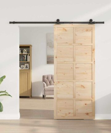 Diese rustikale Schiebetür strahlt einen authentischen Charme aus und vereint die rohe Eleganz von massivem Kiefernholz mit dem industriellen Reiz von Stahlakzenten. Ihre raffinierte rechteckige Form, hervorgehoben durch eine natürliche Holzoberfläche, passt perfekt zu zeitgenössischen und klassischen Innendesigns und eignet sich hervorragend zur Aufwertung von Esszimmern, Wohnzimmern und Schlafzimmern. Ein Topseller unter den Schiebetürsystemen, bietet sie eine nahtlose Integration in moderne oder rustikale Architektur. Ihre opake Textur sorgt für Privatsphäre, während sie die ästhetische Atmosphäre jedes Raumes, den sie ziert, bereichert. Massivholz Kiefer: Diese rustikale Schiebetür ist aus massivem Kiefernholz gefertigt, eine ideale Wahl für alle, die ein Material suchen, das Robustheit mit natürlicher Schönheit verbindet. Die natürlichen Äste und Maserungen des Holzes verleihen jeder Tür ein einzigartiges Aussehen und fügen zudem Stärke hinzu, um häufigen Gebrauch standzuhalten und eine lange Lebensdauer zu gewährleisten. Kiefer ist vielseitig und fügt sich nahtlos in verschiedene Stile ein, was sie zu einer zeitlosen Investition macht. Stahlakzente: Die Integration von Stahl in ihr Design bietet einen eleganten, industriellen Touch, der Kontrast bringt und dem rustikalen Charakter der Tür eine moderne Note verleiht. Stahl ist für seine Widerstandsfähigkeit bekannt und ergänzt die Stabilität des Holzes, erhöht die strukturelle Integrität der Tür und sorgt dafür, dass sie über die Zeit ihre Form und Struktur behält. Schiebemechanismus: Ausgestattet mit verstellbaren Schiebekomponenten bietet die Tür eine effiziente und reibungslose Bedienung, die müheloses Öffnen und Schließen ermöglicht. Diese Funktion ist besonders vorteilhaft in kompakten Räumen und fördert eine offene, luftige Atmosphäre, während sie bei Bedarf die Räume abgrenzt. Zudem sorgt sie für Zuverlässigkeit und ermöglicht häufige Anpassungen, die zur Raumgestaltung passen. Vielseitige Nutzung: Die rustikale Schiebetür ist perfekt für Esszimmer, Lounges oder Schlafzimmer und dient als stilvoller Raumteiler oder elegante Eingangstür. Ihr rustikaler Charme wird durch moderne Vielseitigkeit ergänzt, was sie zu einer idealen Ergänzung in verschiedenen Umgebungen macht. Pflegehinweise: Die Pflege dieses Stücks ist unkompliziert, da es lediglich mit einem trockenen Tuch gereinigt werden muss—keine scharfen Chemikalien erforderlich. Solche Pflege-Routinen gewährleisten, dass deine Tür ihre Schönheit und optimale Funktion über die Jahre behält, und sie bietet zuverlässige Privatsphäre und Stil.