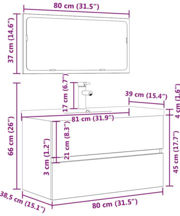 - Maße Waschbeckenschrank: 80 x 38,5 x 45 cm (B x T x H)