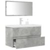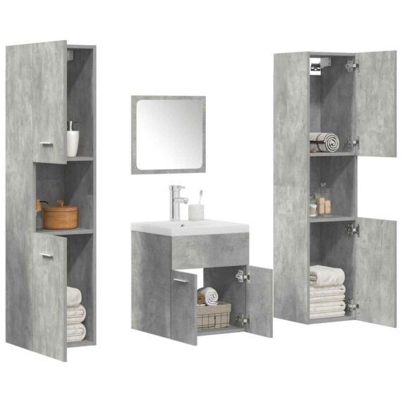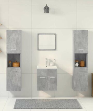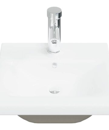 Dieses praktische Badmöbel-Set mit geräumigem Stauraum ist eine hervorragende Ergänzung für dein Badezimmer und verleiht ihm ein aufgeräumtes und eindrucksvolles Aussehen! Langlebiges Material: Holzwerkstoff ist ein Material außergewöhnlicher Qualität mit glatter Oberfläche. Er zeichnet sich durch Festigkeit, Stabilität und Feuchtigkeitsbeständigkeit aus.Langlebiges Material: Das aus Keramik gefertigte Waschbecken besitzt eine robuste Oberfläche, die Stößen, Flecken und Kratzern widersteht und einen lang anhaltenden Glanz aufweist.Reichlich Stauraum: Der Badezimmerschrank bietet reichlich Stauraum, um wichtigste Toilettenartikel und Badutensilien wie Seife, Shampoo, Zahnpasta usw. zu verstauen.Wandmontage: Der Badezimmerschrank lässt sich an der Wand montieren, um zusätzlichen Stauraum zu schaffen. Auf diese Weise kannst du deine Bodenfläche maximieren und leichter für Ordnung sorgen.Klares Spiegelbild: Die Spiegelfläche aus Glas bietet eine feine und unverzerrte Spiegelung, sodass sie sich zum Schminken, Rasieren oder Gesichtspflege eignet. Gut zu wissen:Schrauben und Dübel sind für die Befestigung an der Wand nicht im Lieferumfang enthalten. Wir empfehlen dir, speziell für deine Wände geeignete Schrauben und Dübel zu finden und zu verwenden. Im Zweifelsfall wende dich an einen Fachmann. Bitte lese und befolge jeden Schritt der Anweisungen.