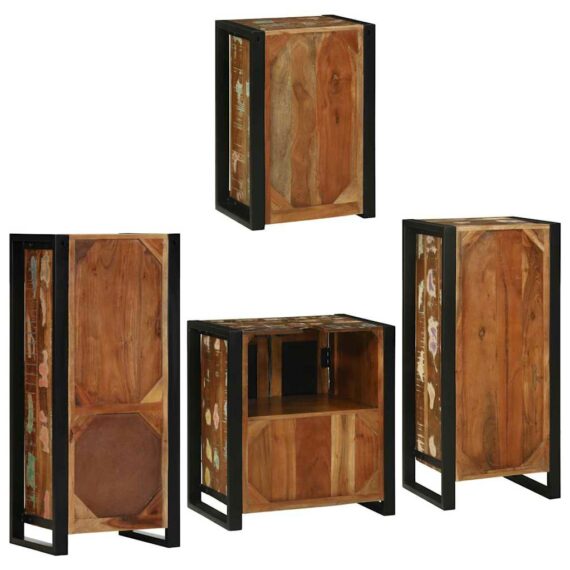 Badezimmermöbel Set 4 pcs Mehrfarbig Massives recyceltes Holz