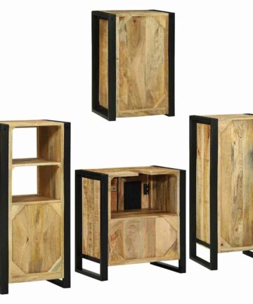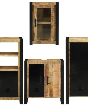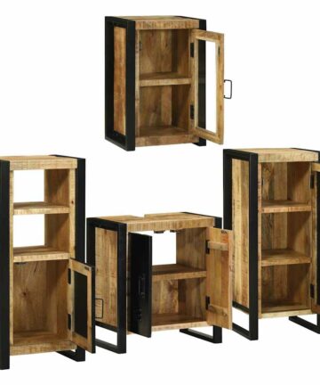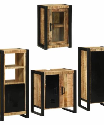 Schau dir dieses Holz-Badezimmermöbel-Set an – es kombiniert Praktikabilität mit rustikalem Flair, perfekt für eine Auffrischung deines Badezimmers. Die gut gestaltete rechteckige Form zeigt die Schönheit der natürlichen Materialien und schafft eine warme, einladende Atmosphäre, die alte und neue Trends perfekt vereint. Materialien & Verarbeitung: Das Set hat einen stabilen Metallrahmen mit einer eleganten schwarzen Oberfläche, die ihm einen modernen Look verleiht. Es ist robust und hält lange, während das rustikale Design jedem Badezimmer einen besonderen Touch gibt. Enthaltene Komponenten: Du bekommst einen großen und einen kleinen Schrank sowie ein Wandregal, die perfekt zusammenarbeiten und eine ordentliche Aufbewahrung ermöglichen. Sie lassen sich einfach an der Wand montieren und nutzen den Platz optimal, besonders für Wohnungen oder kleinere Häuser. Funktionales Design: Die Schränke haben glatte, flächenbündige Türen, die leise funktionieren und leicht zu nutzen sind. Ihr simples, aber stylisches Design ermöglicht dir einen schnellen Zugriff auf alles, was du brauchst, während das Badezimmer ordentlich bleibt. Vielseitige Nutzung: Ideal für jedes Badezimmer, helfen diese Einheiten dabei, Handtücher, Toilettenartikel und andere Dinge ordentlich zu organisieren. Der rustikale Stil hebt das Aussehen simpler Badezimmer hervor und bietet sowohl Schönheit als auch Funktionalität. Pflege & Wartung: Halte die Möbel immer gut aussehend, indem du sie regelmäßig mit einem trockenen Tuch abwischst, um Staub und Schmutz zu entfernen. Aggressive Chemikalien vermeiden, damit die Oberfläche lange frisch bleibt.