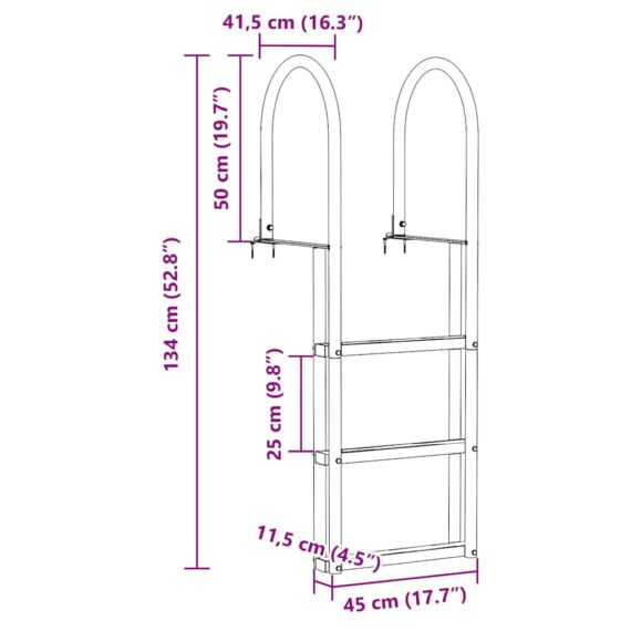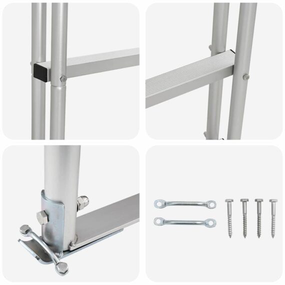 Diese Aluminium-Dockleiter ist eine praktische und moderne Ergänzung, die sowohl Style als auch Funktionalität bietet. Ihre schlanke, glatte Oberfläche fügt sich nahtlos in jede Dockumgebung ein und sorgt für ästhetische Anziehungskraft, während die Benutzerfreundlichkeit an erster Stelle steht. Ideal für Docks, Pontons, Schwimmflöße, Stege und Schwimmbecken, bietet diese Leiter eine vielseitige Lösung für den Wasserzugang. Mit ihrem zeitgemäßen Design, das klare Linien und minimale Verzierungen aufweist, bietet sie eine elegante und zugleich einfache Lösung für Wassersportler und passt sich verschiedenen Anwendungen an, vom entspannten Schwimmen bis zur Pflege des Pools. Starkes Aluminium-Gehäuse: Hergestellt aus hochwertigem Aluminium, gewährleistet diese Dockleiter eine langanhaltende Leistung mit ausgezeichneter Widerstandsfähigkeit gegen Rost und Korrosion. Die hochwertige Verarbeitung sorgt auch in herausfordernden Außenumgebungen für Langlebigkeit und bildet einen verlässlichen Zugang zu Wasserfahrzeugen oder Schwimmplattformen. Nutzer schätzen ihre Robustheit, die sich mühelos in sowohl gewerbliche als auch private Umgebungen einfügt. Rutschfestes Design: Sicherheit geht vor, und diese Leiter verfügt über ergonomische, rutschfeste Pedale, die das Risiko des Ausrutschens bei nassen Bedingungen verringern. Mit dem Fokus auf die Sicherheit der Nutzer bieten die Stufen sicheren Halt und machen diese Leiter verlässlich für Familien und Fachleute gleichermaßen. Ihre sorgfältig gestaltete Oberfläche ermöglicht eine schnelle Wasserableitung und verbessert damit den Grip. Ergonomischer Komfort: Jede Stufe und jedes Handlauf dieser Dockleiter sind durchdacht gestaltet, um eine natürliche Körperhaltung zu unterstützen und die Belastung während der Nutzung zu verringern. Ihr ergonomischer Aufbau ermöglicht es den Nutzern, schnell auf- und abzusteigen, wodurch Unannehmlichkeiten und körperlicher Aufwand minimiert werden. Dies reduziert die Ermüdung für häufige Nutzer und sorgt für Komfort bei alltäglichen Anwendungen. Bereit zur Installation: Ausgestattet mit allen erforderlichen Komponenten für die Montage an Docks oder Stegen ist die Installation einfach. Mit dem eingebauten Montagezubehör bietet sie eine problemlose Einrichtung, sodass Nutzer mit grundlegenden Werkzeugen die Installation mühelos bewältigen können. Dies gewährleistet Kompatibilität und Stabilität, wo immer sie installiert wird, und unterstützt verschiedene Wasseraktivitäten, vom Anlegen von Booten bis hin zu Freizeitwassersport. Einfache Wartung: Diese Leiter in Top-Zustand zu halten, ist ganz einfach mit ihrer eloxierten Oberfläche, die die Widerstandsfähigkeit gegen Umwelteinflüsse erhöht. Regelmäßige Reinigung erfordert lediglich ein feuchtes Tuch und das Vermeiden von scharfen Chemikalien verlängert ihre Lebensdauer. Diese Pflege-Routine erhält nicht nur ihr Aussehen, sondern sorgt auch dafür, dass ihre Stabilität in verschiedenen Jahreszeiten unkompromittiert bleibt.