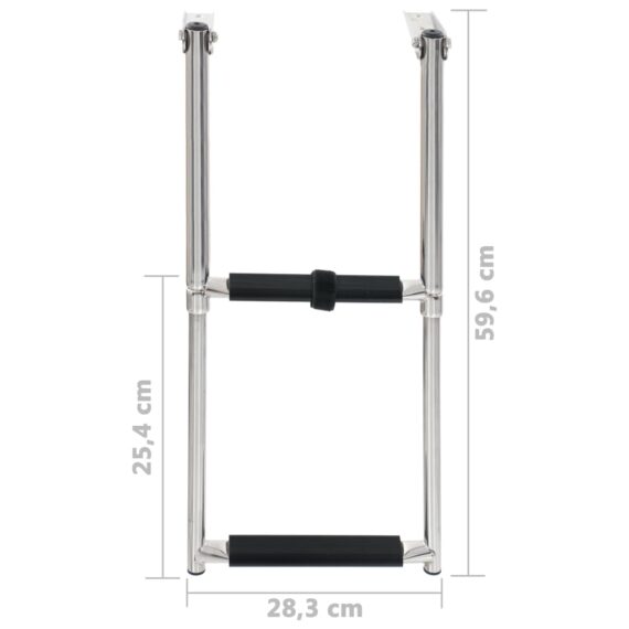 Diese Einstiegsleiter mit Teleskopdesign ist für Ihr Schwimmbecken, Boot und anderen Einstiegsplattformen ein essentielles Zubehör. Das markante Teleskopdesign sorgt dafür, dass sich die Leiter schnell und einfach zusammenklappen lässt, damit Sie sicher einsteigen können. Jede Stufe verfügt über ein rutschfestes Profil, das maximale Sicherheit gewährleistet. Diese Bootsleiter aus hochfestem Edelstahl bietet maximale Haltbarkeit und kann ein Gewicht von bis zu 250 kg tragen. Ein Riemen kann die Stufen befestigen, wenn die Leiter nicht verwendet wird. Im Lieferumfang enthalten ist auch das notwendige Montagezubehör.
