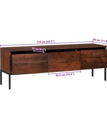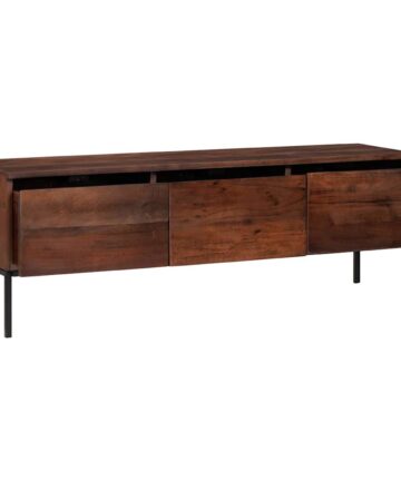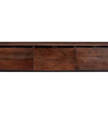 Dieser TV-Schrank, auch als modernes Lowboard bekannt, bringt frischen Wind in jeden Wohnraum. Die glatte matte Textur und die honigbraune Farbe sorgen für eine warme und elegante Atmosphäre, die zu verschiedenen Einrichtungsstilen passt. Für moderne Häuser gemacht, nutzt dieser rechteckige TV-Schrank den Platz optimal und bietet jede Menge Stauraum. Er ist perfekt, egal ob als schicke Medienkonsole im Wohnzimmer oder als ordentliche Aufbewahrungslösung im Schlafzimmer oder Büro. Materialien: Aus solidem Akazienholz, das stark und schön ist. Das warme honigbraune Finish bringt eine natürliche Atmosphäre und passt perfekt in jede Dekoration. Die Kombination aus Holz und Metall sorgt für einen stabilen Rahmen, der gut aussieht und lange hält. Enthaltene Komponenten: Die Rückseite ist unbehandelt für die Wandplatzierung, aber der Rahmen und die Beine in mattem Schwarz fügen einen modernen Touch hinzu. Die Teile sind sorgfältig ausgewählt, um dein Erlebnis mit dem Möbelstück zu verbessern. Funktionen / Verwendung / Design: Diese Einheit bietet viel Stauraum für alles von Medienbedarf bis zu persönlichen Sachen. Ihr modernes Design macht sie zu einer flexiblen Option für jeden Raum – perfekt für zeitgemäßes Wohnen. Empfohlene Verwendung: Ideal für Wohnzimmer, Schlafzimmer oder Büros. Diese Einheit kann als Medienkonsole, Aufbewahrungslösung oder sogar als dekoratives Element dienen. Der moderne Stil passt perfekt zu zeitgemäßen Wohnungen und erfüllt praktische Bedürfnisse für Organisation und Präsentation. Pflege & Wartung: Es ist ganz einfach, ihn schön zu halten. Einfach schnell mit einem weichen, trockenen Tuch abstauben, um die tolle Oberfläche zu erhalten. Achte darauf, dass du ab und zu lose Schrauben nachziehst, damit alles stabil bleibt.