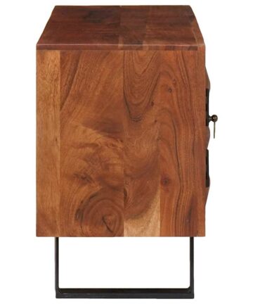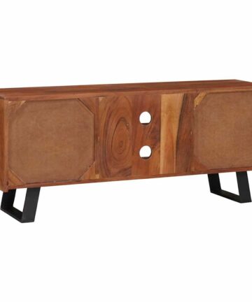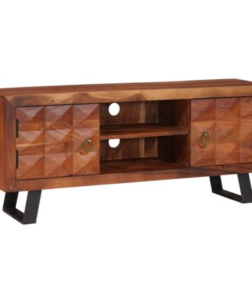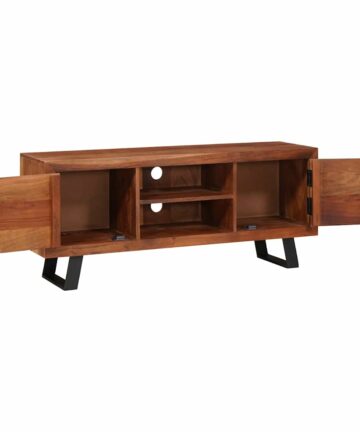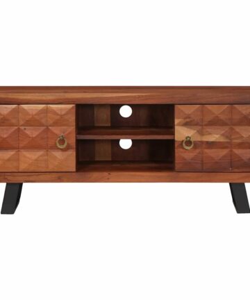 Dieses TV-Regal ist ein echter Hingucker für jedes moderne Wohnzimmer und kombiniert Funktionalität mit einem schicken Design. Die warme honigbraune Farbe und die glatte Oberfläche sorgen für einen edlen Look und passen gut in zeitgenössische Dekorationen. Es ist perfekt für die Aufbewahrung von Mediaplayern und Zubehör und bietet mehrere Fächer und Regale, damit alles ordentlich aussieht. Die rechteckige Form sorgt für ein gutes Verhältnis von stilvollen Proportionen und maximaler Nutzung, was es zu einer tollen Ergänzung für verschiedene Wohnkonfigurationen macht und alles schick und aufgeräumt erscheinen lässt. Robuste Holzstruktur Das Regal ist aus massivem Akazienholz gefertigt, was es stark und langlebig macht. Dieses Holz verblasst nicht und behält seinen Glanz. Es ist stabil genug für den täglichen Gebrauch und sieht dabei gleichzeitig elegant aus. Vielseitige Stauraummöglichkeiten Mit vielen Regalen und Türen hat dieses Regal Platz für all deine Aufbewahrungsbedürfnisse. Das geräumige Design hilft, Kabel, Mediengeräte und Dekoartikel ordentlich zu organisieren. Die matte Oberfläche bringt einen zeitlosen Charme, was es zu einer tollen Ergänzung für jedes Interieur macht. Schickes, modernes Design Der moderne Stil des Regals, mit klaren Linien und einer polierten, matten Oberfläche, hebt die Atmosphäre in jedem Raum. Es passt gut zu zeitgenössischen Möbelstilen und bringt Eleganz mit praktischen Eigenschaften. Es bringt Form und Funktion perfekt in Einklang. Einfache Montage Es muss mit einem Schraubendreher zusammengebaut werden; die Anleitung ist beigelegt und alle notwendigen Werkzeuge sind dabei. Es ist bereits vorgebohrt, was den Aufbau einfach macht. Dieses Design ist ideal für alle, die Wert auf Stil und Einfachheit legen. Einfach zu pflegen Für den Innenbereich gemacht, lässt es sich leicht reinigen. Ein schnelles Abwischen mit einem trockenen Tuch reicht aus, um es in gutem Zustand zu halten und schützt es vor Abnutzung durch aggressive Chemikalien, sodass das Regal regelmäßig in Topform bleibt.
