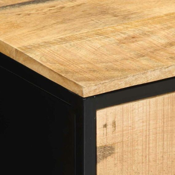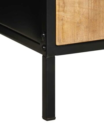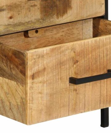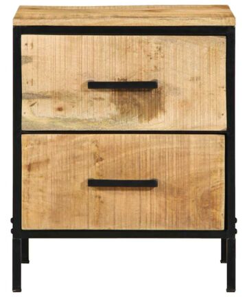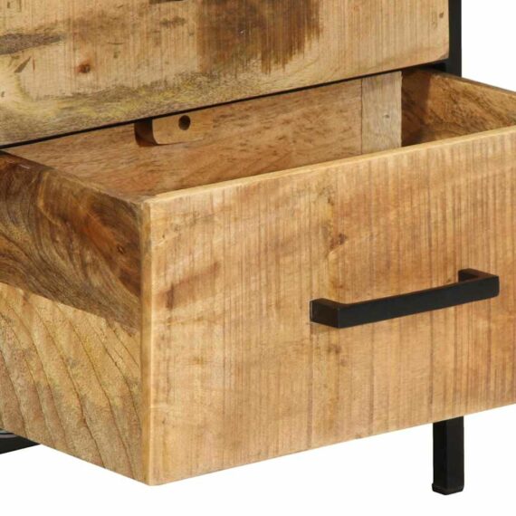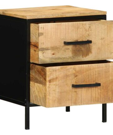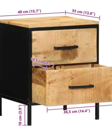 Dieser moderne Holz-Nachttisch hat klare Linien und die praktische Funktionalität, die du brauchst, um deinem Schlafzimmer einen eleganten Flair zu geben. Sein schlankes und minimalistisches Design ist robust und eine zuverlässige Wahl, um deine Nachttisch-Utensilien zu verstauen. Er ist aus massivem Mangoholz und hat einen schwarzen Stahlrahmen – eine coole Mischung aus Aussehen und Haltbarkeit. Das stylische Design macht ihn perfekt für moderne und minimalistische Schlafzimmer, die eine angenehme Atmosphäre schaffen. Top Materialien: Hergestellt aus massivem Mangoholz hat dieser Nachttisch eine tolle strukturierte Oberfläche, die seinen natürlichen Charme zeigt. Der stabile Stahlrahmen sorgt dafür, dass er stark ist und den täglichen Gebrauch ohne Probleme übersteht. Geräumiger Stauraum: Mit zwei klassischen Schubladen hat du jede Menge Platz für deine Sachen. Jede Schublade ist groß genug für Bücher, Gadgets und all deine Sachen, die du nachts brauchst. Der klassische Griff macht das Ganze noch schöner. Modernes Design: Der Nachttisch hat klare Linien, die deinem Schlafzimmer einen frischen Look verleihen. Das matte Finish und die neutralen Braun- und Schwarztöne passen zu vielen Einrichtungsstilen, vom Modernen bis zum Industriellen, und bieten dir ein vielseitiges Stück, das zu deinem Stil passt. Praktisches Design: Die quadratischen Beine geben starken Halt, während die matte Oberfläche ein wenig Abgeschiedenheit bietet. Das pulverbeschichtete Finish schützt ihn vor Kratzern und Witterungseinflüssen, sodass er auch langfristig gut aussieht. Einfache Pflege: Es ist super einfach, diesen Nachttisch in Topform zu halten. Ein schnelles Abwischen mit einem trockenen Tuch reicht aus, um ihn sauber zu halten, und das Finish wehrt Staub und Flecken ab, damit er frisch aussieht – ohne viel Aufwand.