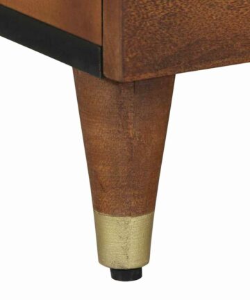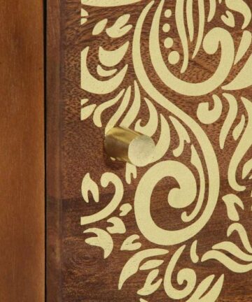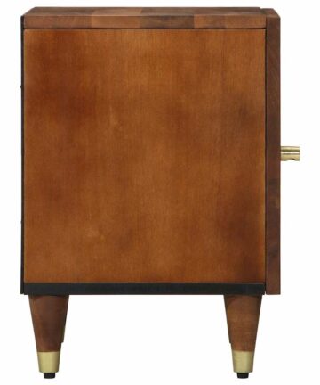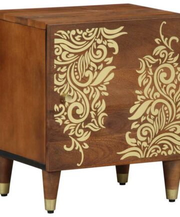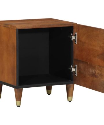 Der moderne Nachttisch sieht schick aus mit seinem matten Finish und den goldenen Akzenten. Er ist ideal für jedes Schlafzimmer, das eine elegante Aufbewahrungslösung braucht und kombiniert smartes Design mit modernem Flair. Perfekt für deine Bettseite sorgt die kompakte Größe dafür, dass du den Platz super nutzt, ohne auf Stauraum zu verzichten. Er ist genau richtig, um Lampen oder deine persönlichen Schätze zu halten. Die rechteckige Form passt toll zu modernen Einrichtungsstilen und bringt einen Hauch von Eleganz und Ruhe mit. Robustes Mangoholz Dieser Nachttisch ist aus hochwertigem, massivem Mangoholz gefertigt und sorgt so für Stabilität und Langlebigkeit. Die natürlichen Eigenschaften des Materials machen ihn nicht nur optisch ansprechend, sondern halten auch dem täglichen Gebrauch stand, während er seinen Charme behält. Die kratzfeste Oberfläche macht ihn zur stylischen und cleveren Wahl für dein Schlafzimmer. Einfache Tür mit Scharnieren Mit einer praktischen Tür mit Scharnieren ist dieser Nachttisch so designt, dass du leicht auf deine wichtigen Sachen zugreifen kannst. Egal, ob du abends ein Buch oder persönliche Dinge verstauen möchtest, der Schrank ermöglicht einfachen Zugriff und gibt dir Privatsphäre. Der elegante Knopf an der Tür fügt einen stylischen Akzent hinzu, der das Gesamtbild unterstreicht. Sanftes mattes Finish Das matte Finish sorgt für einen eleganten und unaufdringlichen Glanz, der den modernen Stil des Nachttischs hervorhebt. Im Gegensatz zu glänzenden Oberflächen bringt ein mattes Aussehen Ruhe und minimaler Lichtreflexion mit sich. Es passt perfekt zu zeitgemäßer Einrichtung und hebt die schlichte Eleganz modernen Designs hervor. Vielseitig einsetzbar Dieser Nachttisch ist perfekt für jedes Schlafzimmer, da seine kompakte Größe nicht erdrückend wirkt. Ideal für alle möglichen Einsätze, egal ob du eine Leseecke einrichtest oder einfach einen Platz für deine Nachttisch-Utensilien suchst. Die klaren Linien sorgen für ein ordentliches Erscheinungsbild und geben jedem Raum Struktur und Stil. Pflegeleicht Es ist super easy, darauf zu achten, dass dieser Tisch frisch und schick bleibt. Ein einfaches Abwischen mit einem trockenen Tuch entfernt den Staub und sorgt dafür, dass er glänzt. Das durchdachte Design bedeutet, dass du nicht viel putzen musst, also kannst du seine Schönheit mit minimalem Aufwand genießen. Diese pflegeleichte Eigenschaft ist perfekt für das hektische Leben, in dem man sich Eleganz ohne viel Aufwand wünscht.