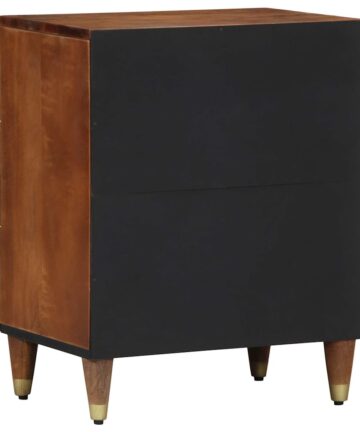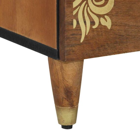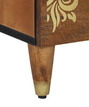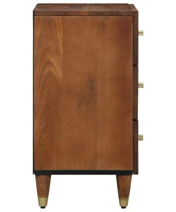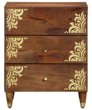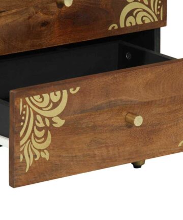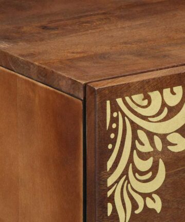 Dieser moderne Nachttisch bringt einen tollen Vibe in jedes Schlafzimmer mit seinem einfachen, praktischen Design. Er ist ideal für Minimalisten und hat ein sauberes Aussehen mit einer matten Oberfläche. Perfekt für deine Lampe oder um nächtliche Essentials zu verstauen, passt seine kompakte Größe in verschiedene Schlafzimmer-Setups. Die strukturierte Oberfläche und die goldenen Akzente verleihen ihm ein modernes, cooles Gefühl, das ihn von einem einfachen Möbelstück zu einem echten Hingucker macht. Nachhaltiges Material: Hergestellt aus massivem Mangoholz hat dieser Nachttisch ein schönes, natürliches Gefühl, das dein Schlafzimmer aufwertet. Er ist robust und eine super Wahl für Möbel, die lange halten und umweltfreundlich sind. Funktionelles Design: Die Schublade mit goldenen Knöpfen macht es dir leicht, deine Sachen zu erreichen. Er passt prima neben jedes Bett und ist perfekt für deine nächtlichen Dinge wie Bücher oder persönliche Gegenstände, um dein Schlafzimmer ordentlich zu halten. Künstlerisches Finish: Mit handbemalten Fronten hat jeder Nachttisch eine einzigartige Handwerkskunst. Dieser kreative Flair gibt deinem Möbel-Sortiment Charakter und Persönlichkeit, was ihn zu einem besonderen Stück in moderner Einrichtung macht. Robuste Bauweise: Das massive Mangoholz und die schmalen Beine sorgen dafür, dass er täglichen Gebrauch aushält, ohne seinen Charme zu verlieren. Das bedeutet, dass es eine nachhaltige Investition in Stil und Funktion ist. Einfach zu pflegen: Ein schnelles Abwischen mit einem trockenen Tuch hält diesen Nachttisch frisch und ordentlich, sodass du weniger Zeit mit Putzen verbringen und mehr genießen kannst.