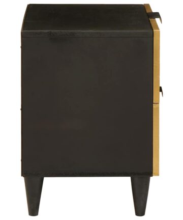 Dieser Nachttisch bietet eine super Mischung aus Stil und Praktikabilität für jedes Schlafzimmer und bleibt dabei simpel und nützlich. Er ist schön aus solidem Mango-Holz gemacht, perfekt für alle, die einen minimalistischen Look mit einer Prise Persönlichkeit wollen. Struktur aus massivem Mango-Holz: Dieser Nachttisch ist aus hochwertigem, massivem Mango-Holz, also robust und langlebig, und hat einen schönen, warmen Touch. Die einzigartige Maserung des Holzes verleiht Charakter und passt wunderbar zu dem schlanken Design, das in jedes moderne Schlafzimmer passt. Geräumiger Stauraum: Mit einer großen Schublade und zusätzlicher Ablagefläche ist er ideal, um all deine Nachtbedürfnisse griffbereit zu haben. Genieße die klare Tischplatte für deine Lampe oder Uhr, während du deine persönlichen Sachen verstaut, die du trotzdem leicht erreichen kannst. Stützbeine: Robuste Beinen aus demselben Mango-Holz halten diesen Tisch stabil und ausgewogen. Egal, ob du Bücher oder ein Getränk abstellst, die Beine sorgen dafür, dass er nicht wackelt. Ästhetische Schwarz-Gold-Akzente: Das coole Schwarz-Gold-Design bringt eine Note von Eleganz. Die schwarzen Griffe passen perfekt zum Tisch, und die goldenen Akzente machen ihn noch ansprechender. Leichte Pflege: Wische ihn einfach mit einem feuchten Tuch ab, um ihn toll aussehen zu lassen. Vermeide aggressive Chemikalien, damit er lange glänzt.