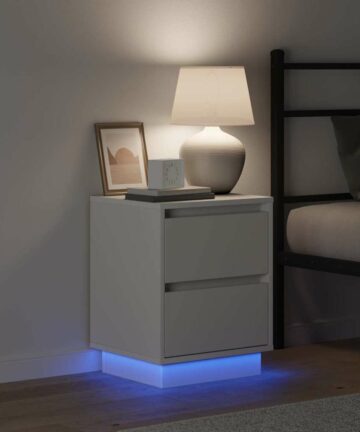 Dieser moderne Nachttisch ist eine coole und praktische Ergänzung für jedes Schlafzimmer. Sein kompaktes Design und die rechteckige Form machen ihn ideal für alle Räume, egal ob groß oder klein. Er ist perfekt für eine Lampe, einen Wecker oder deine persönlichen Sachen. Die klaren Linien und das schlichte Design passen gut zu verschiedenen Einrichtungsstilen und verleihen deinem Raum eine elegante Atmosphäre. Holzwerkstoff-Konstruktion: Dieser Nachttisch ist aus robusten Holzwerkstoffen gefertigt, das heißt, er sieht nicht nur gut aus, sondern ist auch stark und zuverlässig. Er hält dem täglichen Gebrauch stand, ohne seinen Stil oder seine Funktionalität einzubüßen. LED-Lichtfunktion: Mit einem integrierten LED-Licht bietet dieser Nachttisch zusätzlichen Komfort. Der sanfte Schein ist perfekt fürs nächtliche Lesen oder sorgt für angenehmes Licht ohne zusätzliche Lampen. Modernes Design: Dieser Nachttisch hat eine schlichte, moderne Ausstrahlung mit klaren Linien und einem minimalistischen Look. Er passt super in jedes Schlafzimmer, egal ob modern oder traditionell. Effiziente Stauraumlösungen: Er hat eine Schublade aus Holzwerkstoffen, die viel Platz für deine persönlichen Dinge oder Nachttischutensilien bietet. Dank seines cleveren Designs bleibt dein Raum ordentlich, und du kannst alles, was du brauchst, schnell erreichen. Pflege & Wartung: Um ihn in Topform zu halten, wische einfach die Oberfläche mit einem feuchten Tuch ab. Diese einfache Pflege sorgt dafür, dass dein Nachttisch sauber und ansprechend bleibt, sodass er ein dauerhaftes Möbelstück in deinem Schlafzimmer ist.