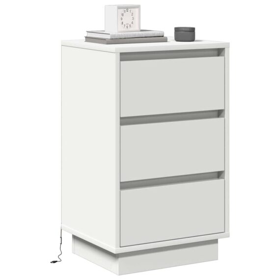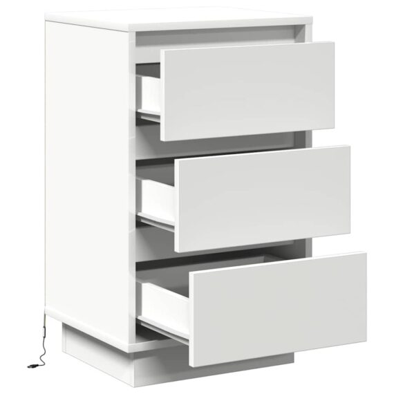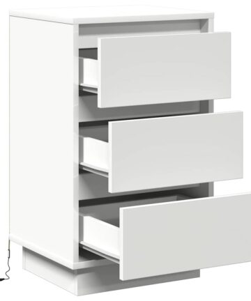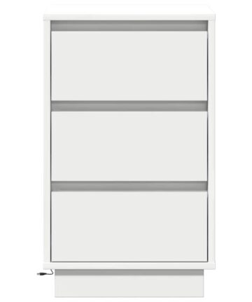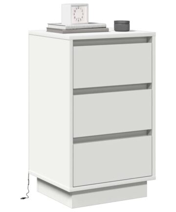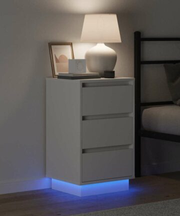 Dieser moderne Nachttisch ist die perfekte Ergänzung für jedes Schlafzimmer. Er hat ein cooles Design, das gleichzeitig praktisch ist. Aus Holzwerkstoff gefertigt, passt der kleine Nachttisch zu vielen Einrichtungsstilen und bietet genug Platz für persönliche Sachen, eine Lampe oder deinen Wecker. Seine geraden Linien und der minimalistische Stil geben eine elegante Note, die ihn sowohl in klassischen als auch in modernen Räumen zum echten Hingucker macht. Konstruktion aus Holzwerkstoff Dieser Tisch ist aus hochwertigem Holzwerkstoff gefertigt, der sicherstellt, dass er robust und langlebig ist. Die glatte Oberfläche sieht nicht nur schick aus, sondern macht auch die Reinigung super easy. LED Lichtfunktion Mit der integrierten LED-Beleuchtung kannst du deine Sachen nachts ganz leicht finden. Das sanfte Licht sorgt dafür, dass du niemanden aufweckst, während du nach etwas suchst. Ein echt praktisches Feature für deine Abendroutine. Benutzerfreundlicher Stauraum Der kompakte Tisch hat zwei praktische Schubladen, die genug Platz für persönliche Dinge wie Bücher und Brillen bieten. Die Schubladen laufen auf Metallführungen, sodass du schnell an das kommst, was du brauchst, und dein Raum ordentlich bleibt. Eleganter moderner Stil Sein modernes Design setzt auf Einfachheit und Praktikabilität und passt zu verschiedenen Innenstilen. Die klaren Linien machen ihn zu einem vielseitigen Möbelstück, das in kleinen sowie in großen Schlafzimmern toll aussieht. Leichte Pflege und Montage Die Pflege des Nachttischs ist ganz einfach; ein feuchtes Tuch reicht. Auch die Montage ist leicht, du brauchst nur ein paar Hände und einen Schraubendreher für einen stabilen Aufbau, der für den täglichen Gebrauch gewappnet ist.