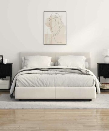 Dieser moderne Nachttisch dient als die perfekte Mischung aus Form und Funktion für dein Schlafzimmer. Seine kompakte, rechteckige Struktur macht ihn ideal für kleine Räume und bietet eine zeitgenössische Ästhetik mit seinem sauberen, minimalistischen Design. Mit einem schlanken visuellen Auftritt ergänzt er Dekors, die von klassisch bis schick reichen, und ist perfekt zum Organisieren deiner persönlichen Gegenstände, Nachttischlampe oder Wecker. Mit einer texturierten Oberfläche strahlt er eine elegante Schlichtheit aus, die für jedes moderne Zuhause geeignet ist. Holzwerkstoff-Bau Dieser Nachttisch ist aus hochwertigem Holzwerkstoff gefertigt, der seine Haltbarkeit erhöht und gegen allgemeinen Verschleiß über die Zeit widerstandsfähig ist. Die texturierte Fläche verleiht einen raffinierten Touch und passt hervorragend zu verschiedenen Schlafzimmerumgebungen. Brett-Regale Mit Brett-Regalen bietet dieser Schrank reichlich Stauraum zum ordentlichen Aufbewahren persönlicher Dinge, Bücher oder kleiner dekorativer Stücke. Diese Regale sind nicht nur funktional, sondern halten auch eine ästhetische Ausrichtung im zeitgemäßen Stil. Stahlrahmen Die Struktur des Schranks wird durch einen robusten Stahlrahmen gestützt, der Stabilität und langanhaltende Unterstützung gewährleistet. Seine nahtlose Integration in das Design erhält den modernen, schlanken Look und bietet gleichzeitig Haltbarkeit und Nützlichkeit. Rechtwinklige Form Seine rechteckige Form ermöglicht eine strategische Platzierung neben deinem Bett oder in kompakteren Bereichen des Schlafzimmers und nutzt den verfügbaren Platz optimal, ohne Stil oder Funktion einzubüßen. Dieses Design ist perfekt für diejenigen, die Ordnung und Schlichtheit schätzen. Einfache Pflege Um sein Aussehen zu erhalten, wische einfach den Schrank nach Bedarf mit einem feuchten Tuch ab, was sicherstellt, dass das Stück über die Zeit optimal aussieht und funktioniert. Diese einfache Pflege trägt zu seinem langanhaltenden Reiz und seiner Praktikabilität bei.