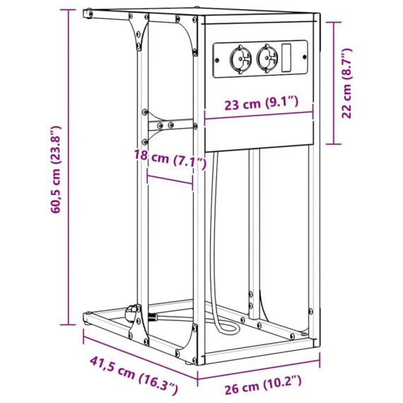 - Gesamtabmessungen: 41.5 x 26 x 60.5 cm (L x B x H)