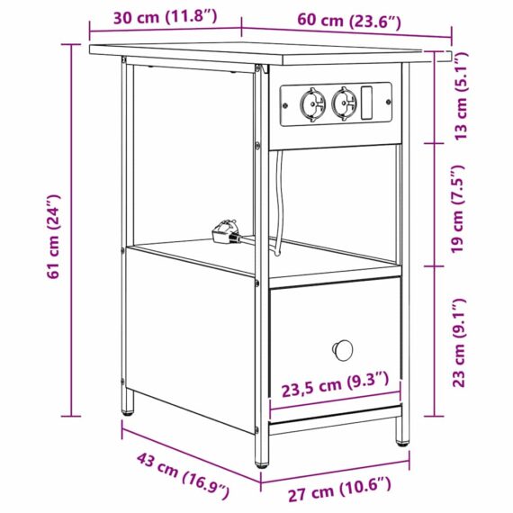 - Gesamtabmessungen: 60 x 30 x 61 cm (L x B x H)