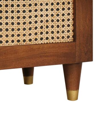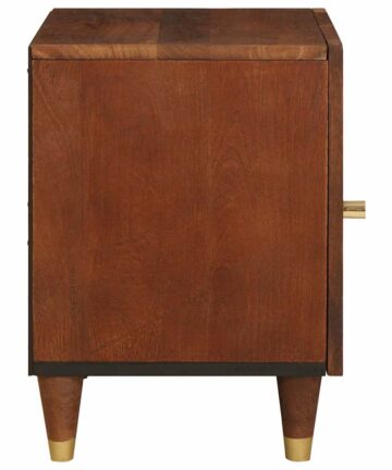 Dieser rechteckige Nachttisch aus Mango-Holz ist genau das, was jedes Schlafzimmer braucht, weil er Style und Praktikabilität richtig gut kombiniert. Hergestellt aus massivem Mango-Holz, bringt er einen warmen, schönen Touch mit einem schlichten Look. Dieses praktische Stück passt perfekt neben dein Bett und macht es einfach, an deine Essentials wie eine Lampe, einen Wecker oder persönliche Sachen zu kommen. Mit seinem klassischen Style und der robusten Bauweise passt er zu vielen Wohnstilen und ist super langlebig. Materialien: Der Nachttisch ist aus massivem Mango-Holz und Spanplatte gemacht, das sorgt für Langlebigkeit und sieht richtig gut aus. Das Hauptmaterial behält seine Farbe und Aussehen über Jahre, was ihn zu einer klugen Wahl für drinnen macht. Enthaltene Komponenten: Er hat zwei Türen, die dir ordentlich Stauraum bieten, um deine Sachen sauber zu halten. Seine kompakte Form passt gut in jedes Schlafzimmer, ohne erdrückend zu wirken. Funktionen / Design: Mit seinen Türen versteckt er deine Essentials, was hilft, dein Zimmer hübsch und ordentlich zu halten. Sein praktisches Design eignet sich für moderne und traditionelle Schlafzimmer und bringt sowohl Style als auch Benutzerfreundlichkeit. Empfohlene Verwendung: Am besten im Schlafzimmer genutzt, ist dieser Tisch perfekt zum Aufbewahren von nächtlichen Essentials. Sein kompaktes rechteckiges Format ist klasse für kleinere Räume und bringt Komfort und Charme in deinen Raum. Montage & Pflege: Du brauchst zwei Personen und einen Schraubendreher zum Zusammenbauen. Um ihn sauber zu halten, wisch einfach mit einem weichen, trockenen Tuch darüber – keine scharfen Reinigungsmittel nötig.