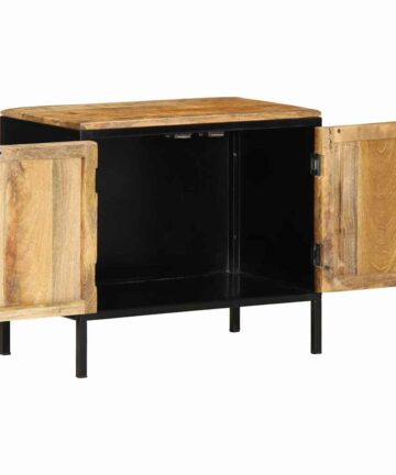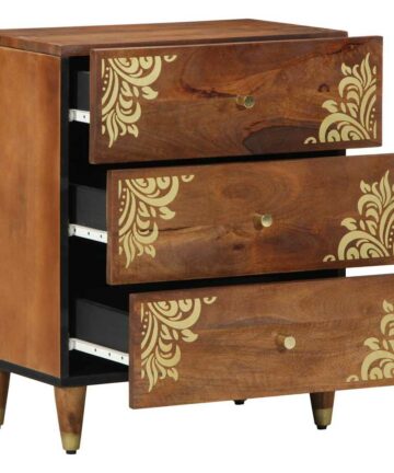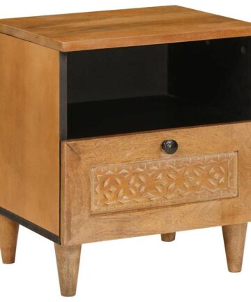 Nachttisch Braun und Schwarz 50 x 30 x 45 cm massives Mangoholz