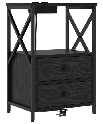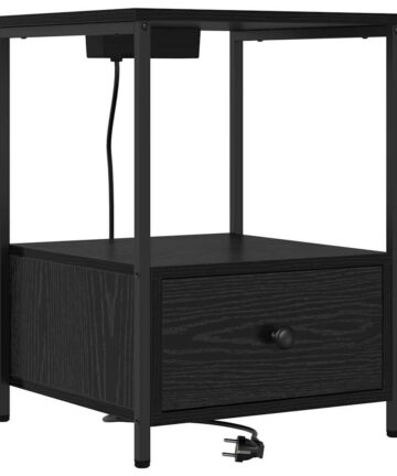 Nachttisch mit Ladestation Schwarze Eiche Holzwerkstoff