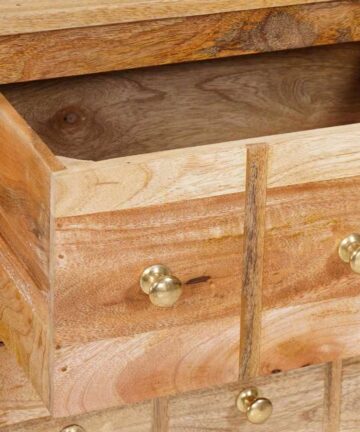 Dieses Sideboard aus massivem Akazienholz bringt rustikalen Charme in dein Zuhause. Es kombiniert Stil und Funktionalität und passt hervorragend in Esszimmer, Lounges oder Flure. Mit seiner warmen braunen Farbe schafft es eine einladende Atmosphäre, die gut zu deinem bestehenden Einrichtungsstil passt. Ob du eine Dinnerparty veranstaltest oder einfach nur dein Wohnzimmer aufräumst, dieses vielseitige Möbelstück hält deine Dinge ordentlich und sieht dabei super aus. Robuste Bauweise: Hergestellt aus solidem Mango-Holz, ist dieses Sideboard stabil und langlebig. Es hält dem täglichen Gebrauch gut stand. Viel Stauraum: Die geräumigen Fächer und Schubladen sorgen dafür, dass Essenssachen, Bücher oder Dekoartikel ordentlich verstaut werden. Der einfache Zugriff macht es sowohl praktisch als auch stylisch. Rustikaler Charme: Die warme braune Oberfläche verleiht ihm einen tollen rustikalen Look, der zu vielen Stilen passt. Dieses Design gibt deinem Zuhause Charakter, egal ob modern, minimalistisch oder klassisch. Vielseitig einsetzbar: Das Sideboard ist perfekt für verschiedene Räume und passt in jedes Zuhause. Es erfüllt vielfältige Stauraumbedürfnisse. Montage-Infos: Wird flach verpackt geliefert und benötigt zwei Personen mit einfachen Werkzeugen zum Zusammenbauen. Nach dem Aufbau wird es zum stilvollen Mittelpunkt in deinem Wohnraum.