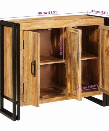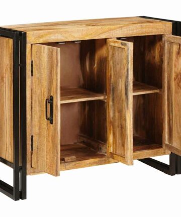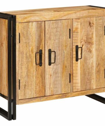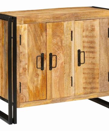 Dieses industrielle Sideboard vereint Rohmaterialien und modernes Design und ist damit ein echter Hingucker in deinem Ess- oder Wohnzimmer. Mit seiner robusten Präsenz bringt es urbanes Loft-Feeling in dein Zuhause. Egal, ob du Esswaren verstauen oder Deko-Objekte präsentieren möchtest, es erfüllt alle Lagerbedürfnisse und sorgt dafür, dass dein Raum organisiert und schick bleibt. Materialien: Dieses Sideboard hat ein elegantes braunes Finish aus strapazierfähigem Hartholz, das zeitlos aussieht und lange hält. Eisen als zusätzliches Material verstärkt den industriellen Charme und sorgt dafür, dass es stabil bleibt und seine Funktionen über die Jahre beibehält. Inklusive Komponenten: Das Design beinhaltet praktische D-Griffe für einfache Bedienung, kombiniert mit Türscharniere für sicheren Verschluss. Die schöne Rückseite ermöglicht flexible Platzierung an Wänden oder in offenen Raumbereichen und maximiert so die Funktionalität. Eigenschaften / Funktion / Design: Mit viel Stauraum eignet sich das Sideboard perfekt für verschiedene Haushaltsgegenstände und ist ein Must-have für alle, die mehr Platz brauchen. Die sorgfältig gefertigten Türen halten den Inhalt geschickt verborgen und fördern eine organisierte Atmosphäre. Empfohlene Verwendungen: Ideal für Esszimmer, um sowohl Lager- als auch Stilbedürfnisse zu decken, oder im Wohnzimmer, um deine Lieblingsdeko zu zeigen – dieses Stück passt sich mit seinem eleganten Look an verschiedene Umgebungen an. Pflege und Wartung: Stelle sicher, dass das Sideboard nicht direkter Sonneneinstrahlung ausgesetzt ist. Um ein Umkippen zu verhindern, sollte es an der Wand gesichert werden. Diese einfachen Wartungsschritte sorgen dafür, dass dein Möbelstück über Jahre hinweg in Topform bleibt.