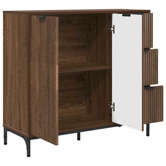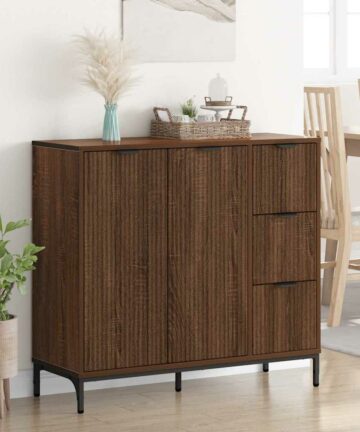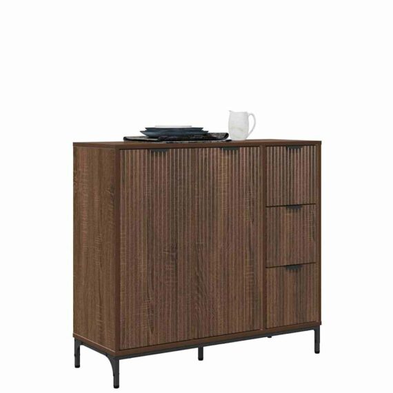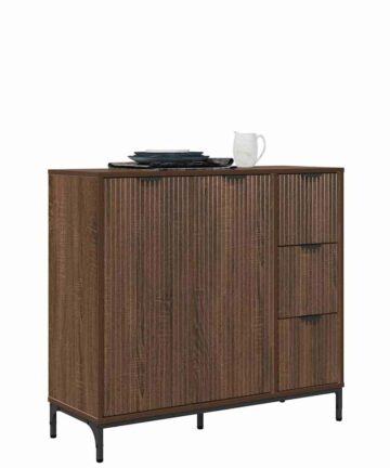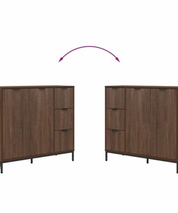 Dieses Sideboard kombiniert modernen Stil mit funktionaler Nutzung und ist die perfekte Aufbewahrungslösung für jedes zeitgemäße Zuhause. Die klaren Linien und das schlichte Design passen hervorragend zu Küchen, Wohnzimmern und Esszimmern und schaffen eine Ästhetik, die sowohl elegant als auch praktisch ist. Die schlanke Form ermöglicht es, es einfach mit bestehendem Dekor zu kombinieren und bringt gleichzeitig einen Hauch von Eleganz in jeden Raum. Dieses Möbelstück bietet Platz für dekorative Elemente wie Vasen oder Bilderrahmen oben, während der Innenraum ausreichend Stauraum für die Organisation deiner Dinge bietet. Holzwerkstoff-Konstruktion Das Sideboard ist aus hochwertigem Holzwerkstoff gefertigt, was aussieht wie echtes Holz. Es ist zudem strapazierfähig und hält lange. Holzwerkstoff ist leicht zu bewegen und einfach zu reinigen. Praktische Stauraum-Features Mit Regalen und Schubladen bietet dieses Sideboard viele Möglichkeiten zur Organisation. Die Türen klappen auf und geben Zugang zu Fächern für größere Objekte, während die Schubladen Platz für kleinere Dinge bieten. Das durchdachte Design sorgt für Ordnung und einfachen Zugriff. Moderne Ästhetik Das Sideboard steht im Mittelpunkt zwischen Stil und Funktionalität. Seine klaren Linien und das schlichte Design passen perfekt zum modernen Einrichtungsstil und machen es zum idealen Mittelpunkt in jedem Raum. Vielseitige Nutzung Mit viel Stauraum und Flexibilität ist dieses Stück eine multisystemfähige Einheit, die in verschiedenen Räumen eingesetzt werden kann. Ob als Buffet im Esszimmer oder als Aufbewahrungslösung im Wohnzimmer, seine Anpassungsfähigkeit sticht hervor. Die Oberseite kann Kunstwerke oder Lampen zeigen, was die Funktionalität zusätzlich erhöht. Einfach zu pflegen Um die Sicherheit zu gewährleisten und den Zustand zu erhalten, befestige das Sideboard mit dem mitgelieferten Wandhalter. Eine sorgfältige Montage ist erforderlich, wobei zwei Personen und einfache Werkzeuge nötig sind, wie ein Schraubendreher und eine Bohrmaschine.